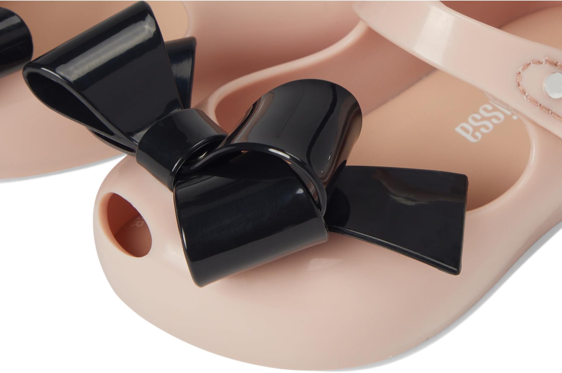 • Баллеты Mini Melissa Ultragirl Classy полностью перерабатываемые, сертифицированные как веганские и водонепроницаемые. Верх из ПВХ украшен двойным бантом, а стелька имеет аромат жевательной резинки. Резиновая стелька обеспечивает комфорт при длительном ношении. Стильные и легко надеваемые, эти балетки подойдут для самых разных случаев.