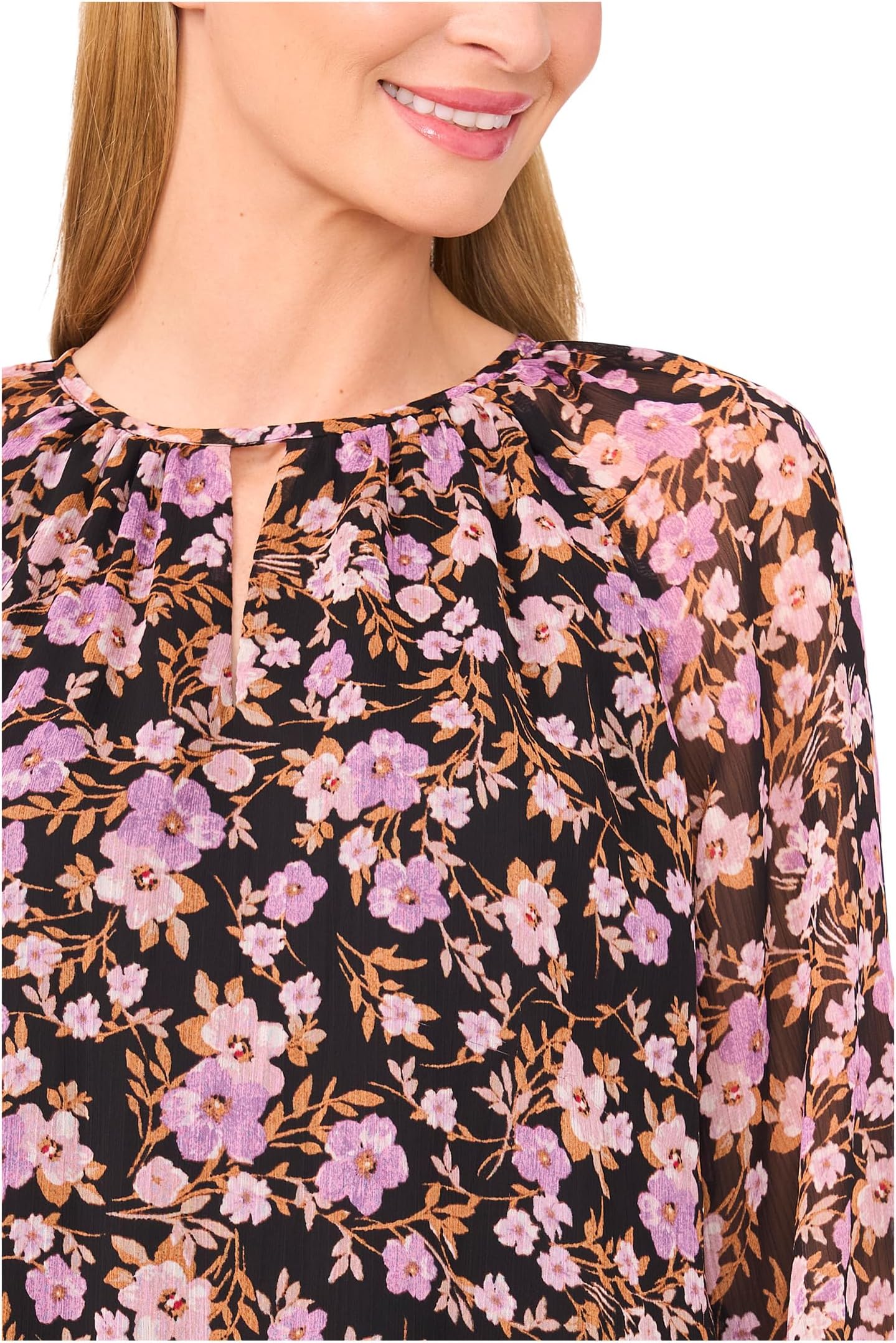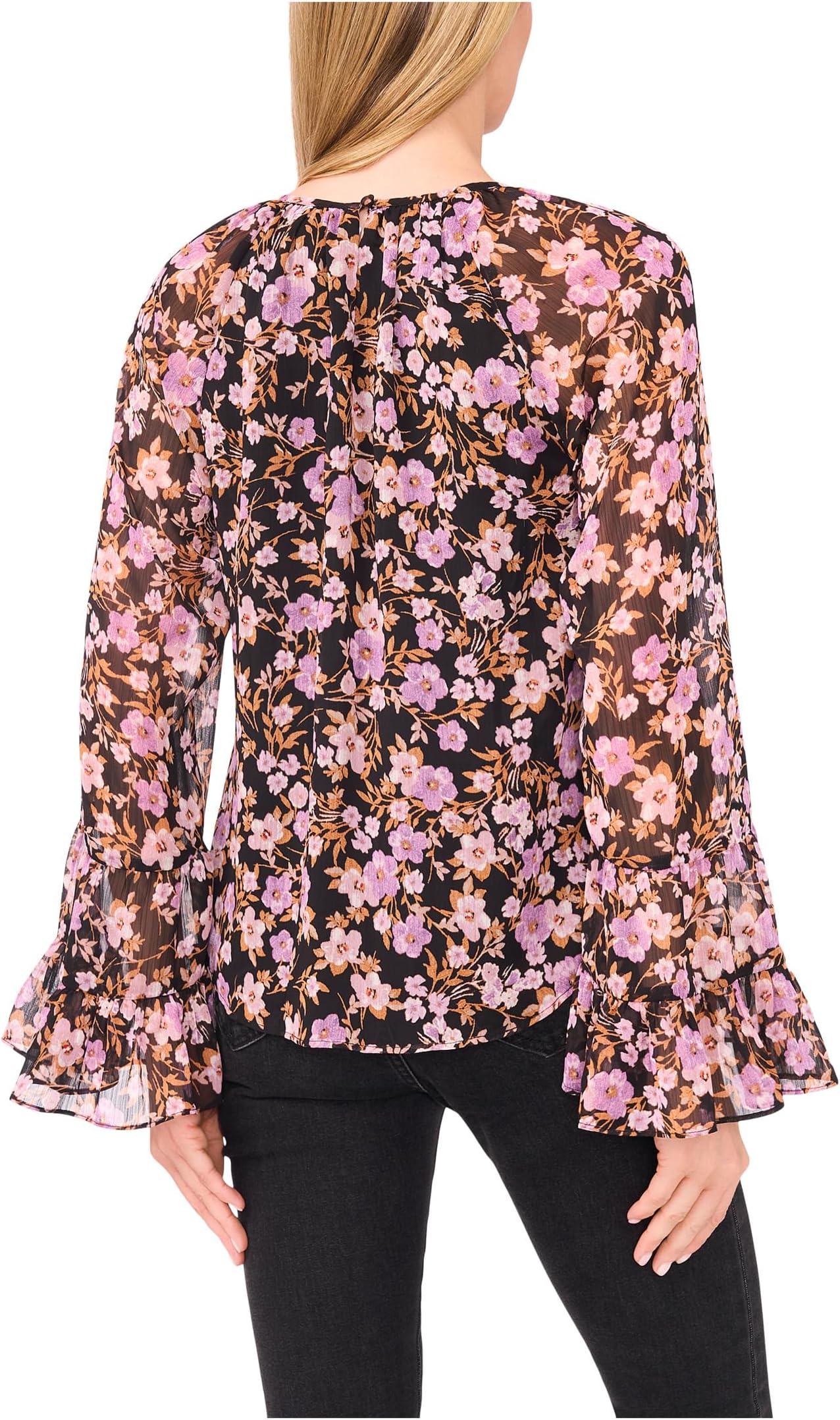 Блуза CeCe Tiered Flowy Long Sleeve Keyhole Blouse, цвет Rich Black 6 852₽