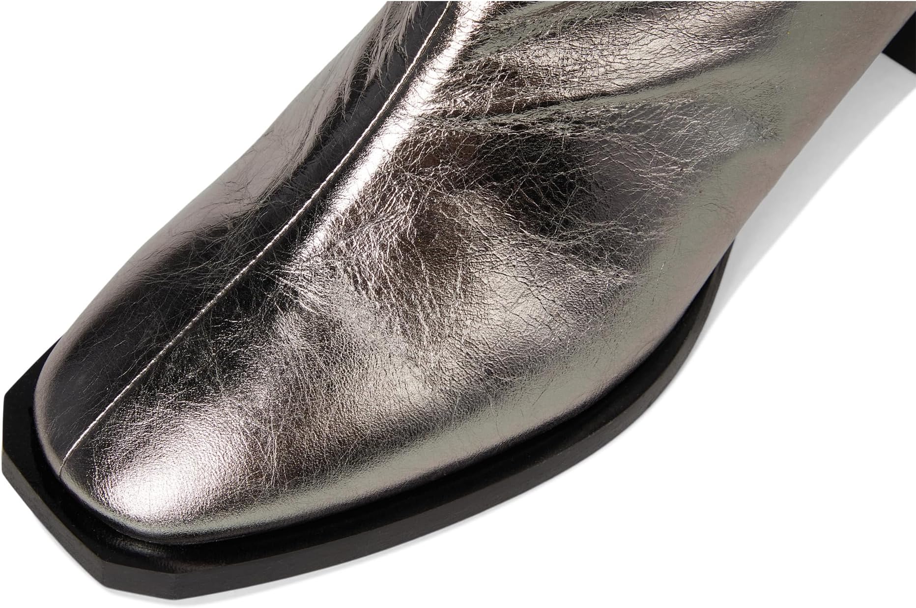 • Ботинки AllSaints Avril Metallic — ваш идеальный выбор. Эта незаменимая модель нового сезона имеет облегающий силуэт, современный квадратный носок и массивный каблук. Верх из мягкой кожи, слегка эластичный, с застежкой-молнией сбоку, что делает их невероятно удобными. Попробуйте сочетать их с широкими джинсами и подчеркните свой фирменный стиль.