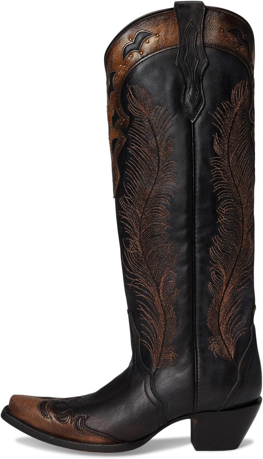 • Ботинки Corral Boots A4767 украшены вышивкой в виде перьев чёрно-медового оттенка, кракелюровым накладным элементом и заклёпками. Эти высокие сапоги изготовлены из кожи: верх, стелька и подкладка. Боковые ручки и застёжка-молния сбоку позволяют легко надевать и снимать сапоги. Эти сапоги на каблуке до колена — идеальный выбор, чтобы подчеркнуть ваш стиль.