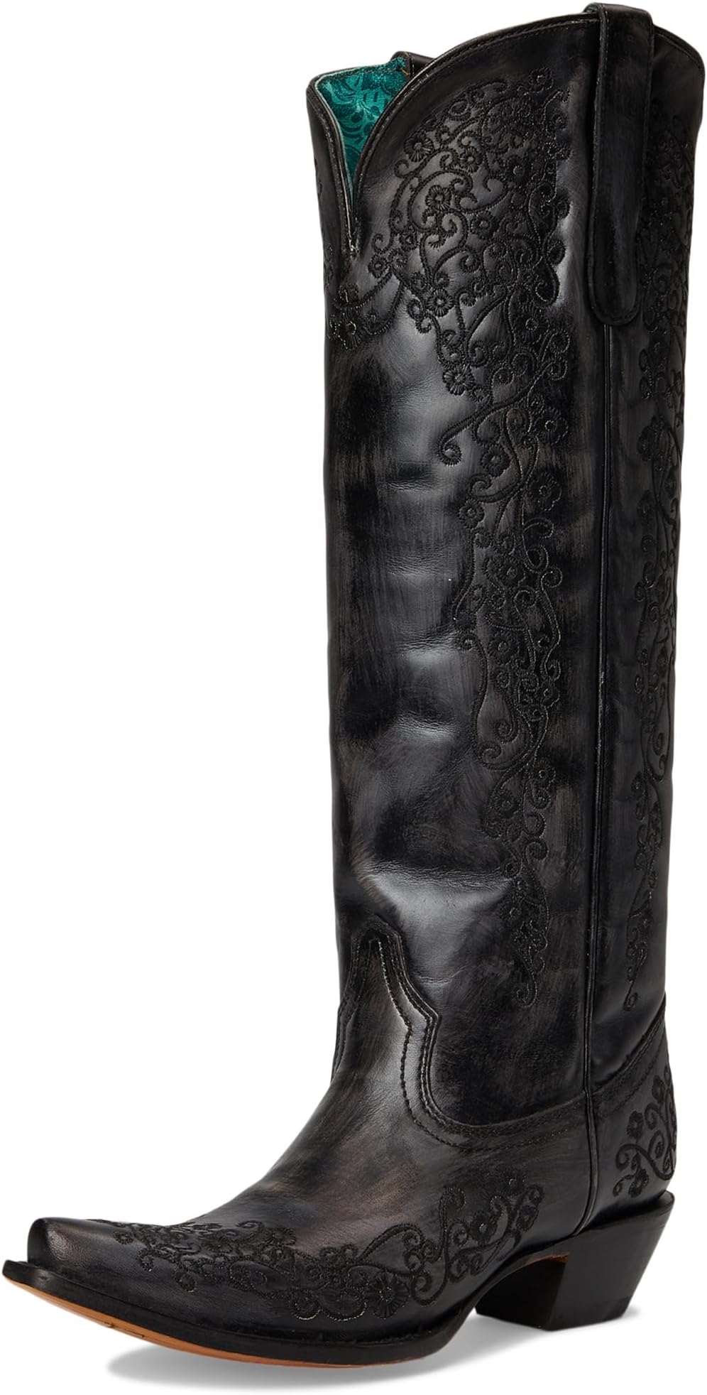 • Ботинки Corral A4788 — это высокие сапоги до колена с черной цветочной вышивкой и каблуком в ковбойском стиле. Кожаная стелька и подкладка делают их удобными и долговечными. Кожаный верх застегивается на молнию сбоку для удобства надевания и снимания. Эти сапоги на каблуке будут привлекать всеобщее внимание, куда бы вы ни пошли.