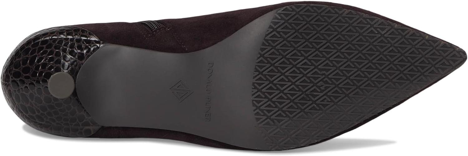 • Заявите о себе в этих изысканных ботильонах Donald Pliner Dazha, созданных для непринужденной элегантности и современного стиля. Благодаря гладкому верху из замши, эти ботинки имеют утонченный силуэт с острым носком, придающим образу нотку драматизма. Яркая деталь? Уникальный рельефный каблук-рюмочка с сочетанием текстур и металлических акцентов, придающий обуви смелый, но элегантный вид.