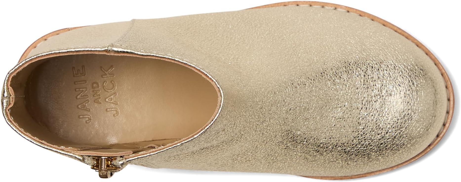 • Сияйте ярко и смело в ботинках Janie and Jack Gold Bootsie. Это идеальное сочетание стиля и комфорта, созданное для того, чтобы каждый ваш шаг был блестящим. Эти высокие ботинки с гладким верхом и подкладкой из полиуретана обладают безупречной отделкой, которая подойдет для любого случая. Мягкая хлопковая стелька обеспечивает амортизацию и комфорт, а прочная подошва из синтетической резины — надежную поддержку как для игр, так и для нарядных моментов. Благодаря конструкции, которую можно надеть, эти ботинки позволяют легко и непринужденно собраться, не беспокоясь о моде.