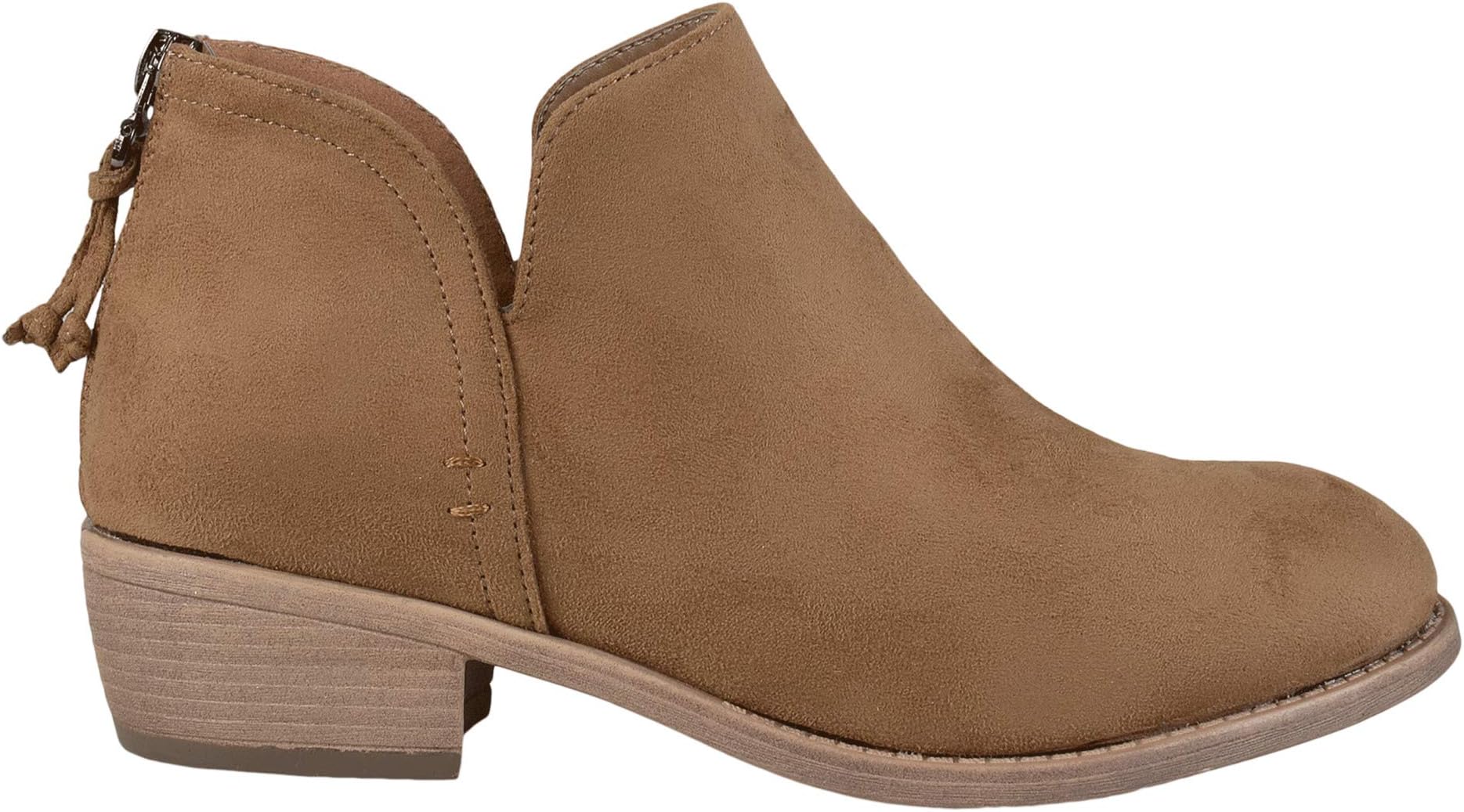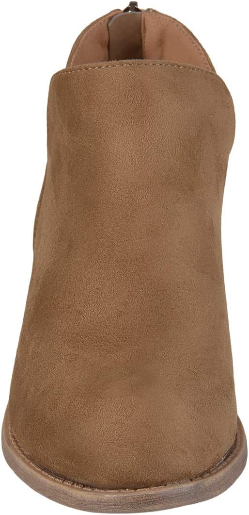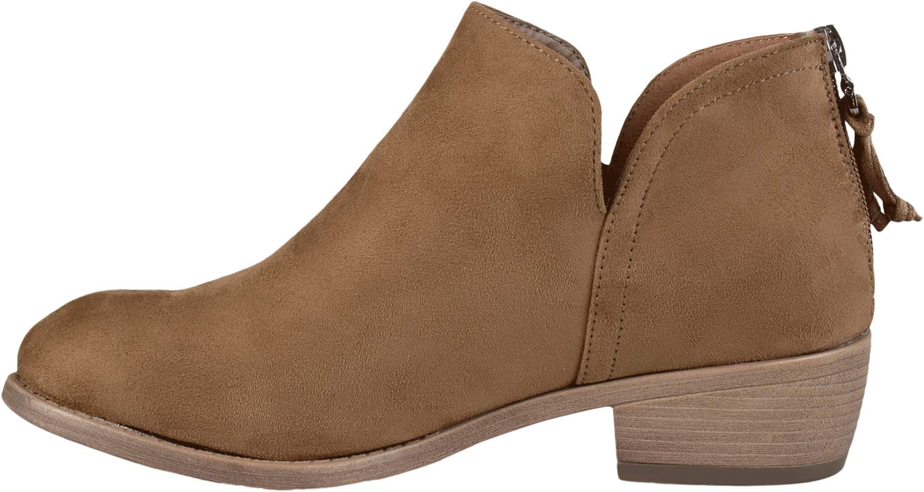 • Ботинки Livvy из коллекции Journee имеют верх из искусственной кожи, конструкцию без застежки, застежку-молнию сзади, боковые разрезы и наборный каблук.