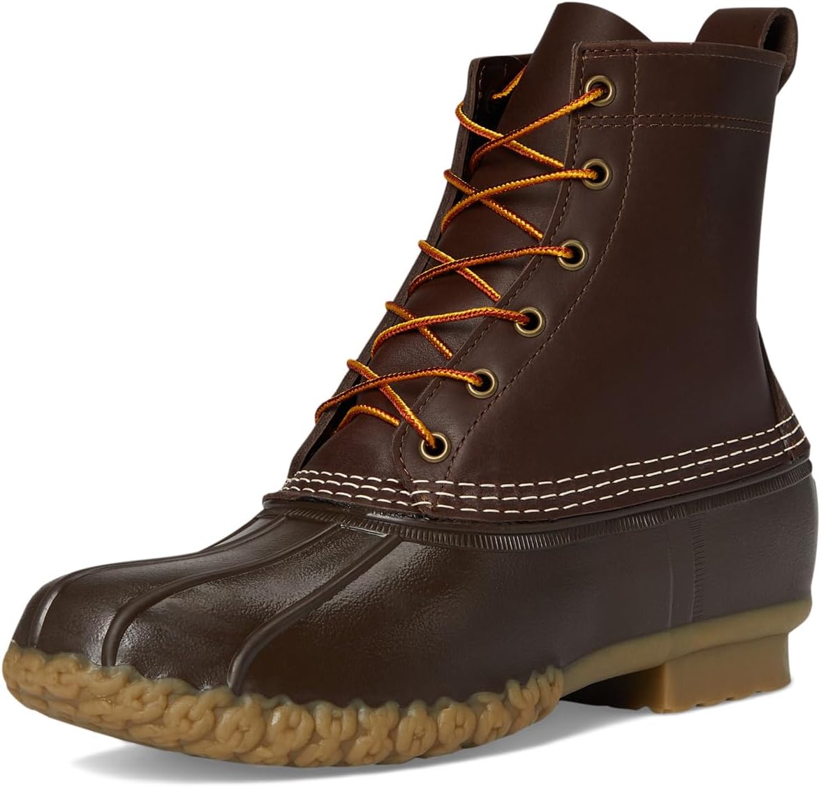 • Оригинальные ботинки LLBean 8" Bean Boots, обеспечивающие ноги сухими и комфортными с 1912 года, изготовлены из натуральной кожи и водонепроницаемой резины, которая защищает от дождя и снега. Эти классические ботинки оснащены шнуровкой с язычком сзади для удобства надевания и снятия.