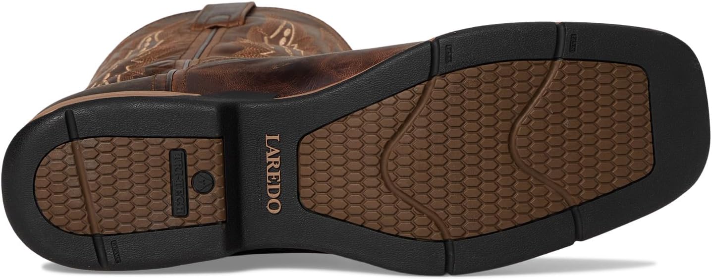 • Laredo Vapor — это прочные, функциональные ковбойские сапоги, созданные для долговечности и комфорта. Верх из высококачественной кожи, вышитый в стиле вестерн, широкий квадратный носок и наборный каблук обеспечивают прочную, сбалансированную посадку. Резиновая подошва Tri-Tech обеспечивает отличную гибкость, амортизацию и долговечное сцепление. Внутри — съёмная ортопедическая стелька, которая снижает давление на стопу и обеспечивает поддержку.