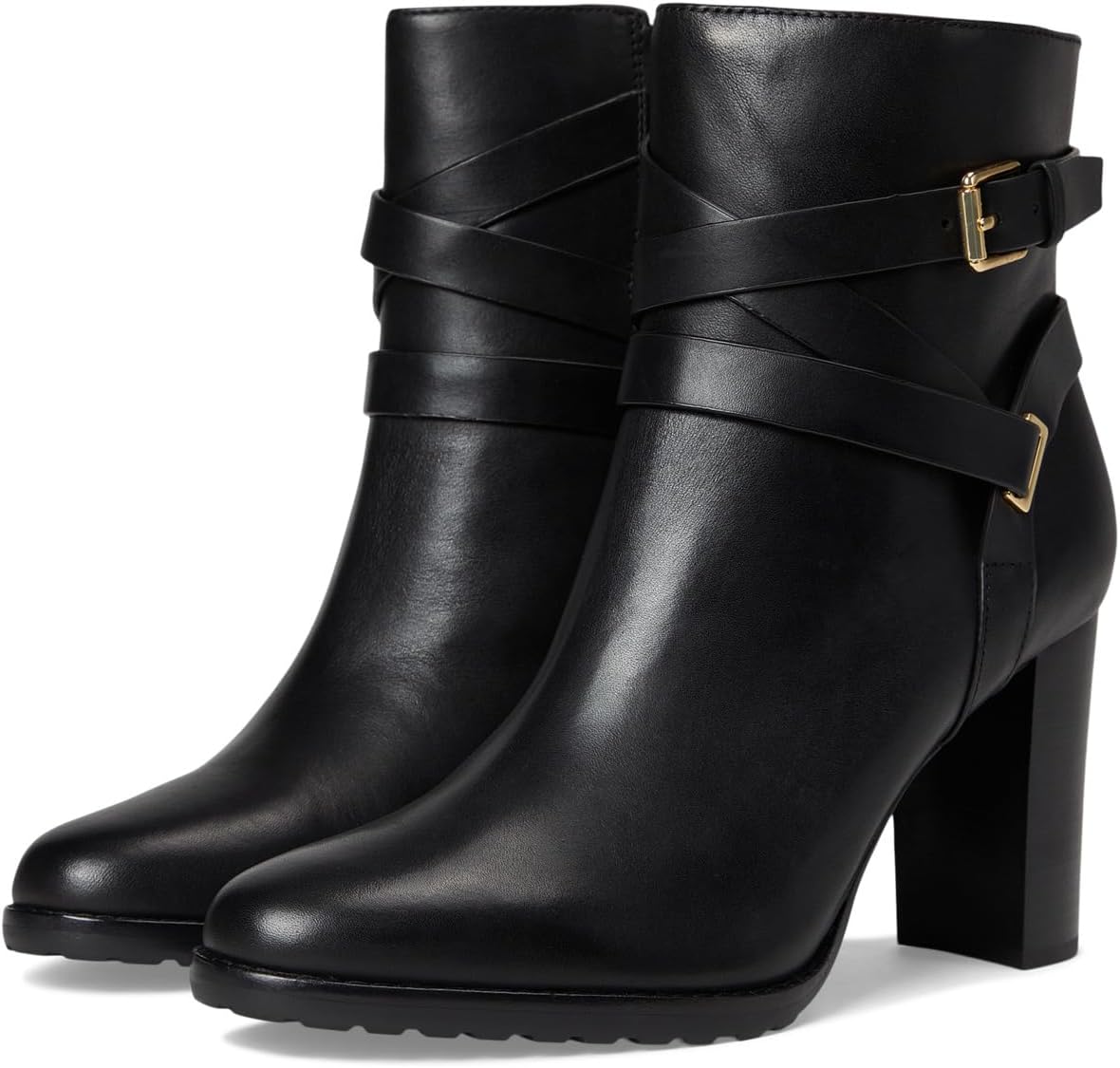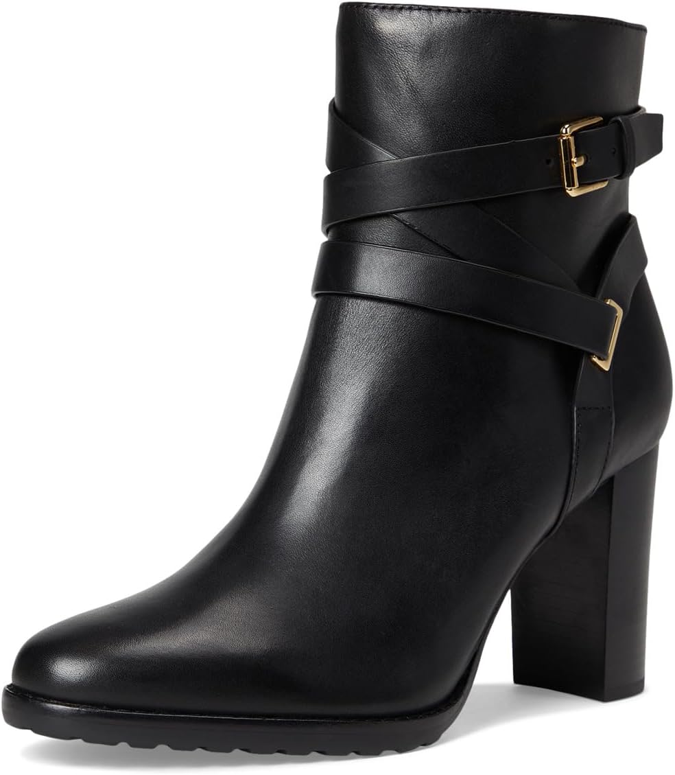 Ботинки Lauren Ralph Lauren Collins Burnished Leather Bootie Heel, черный 16 368₽