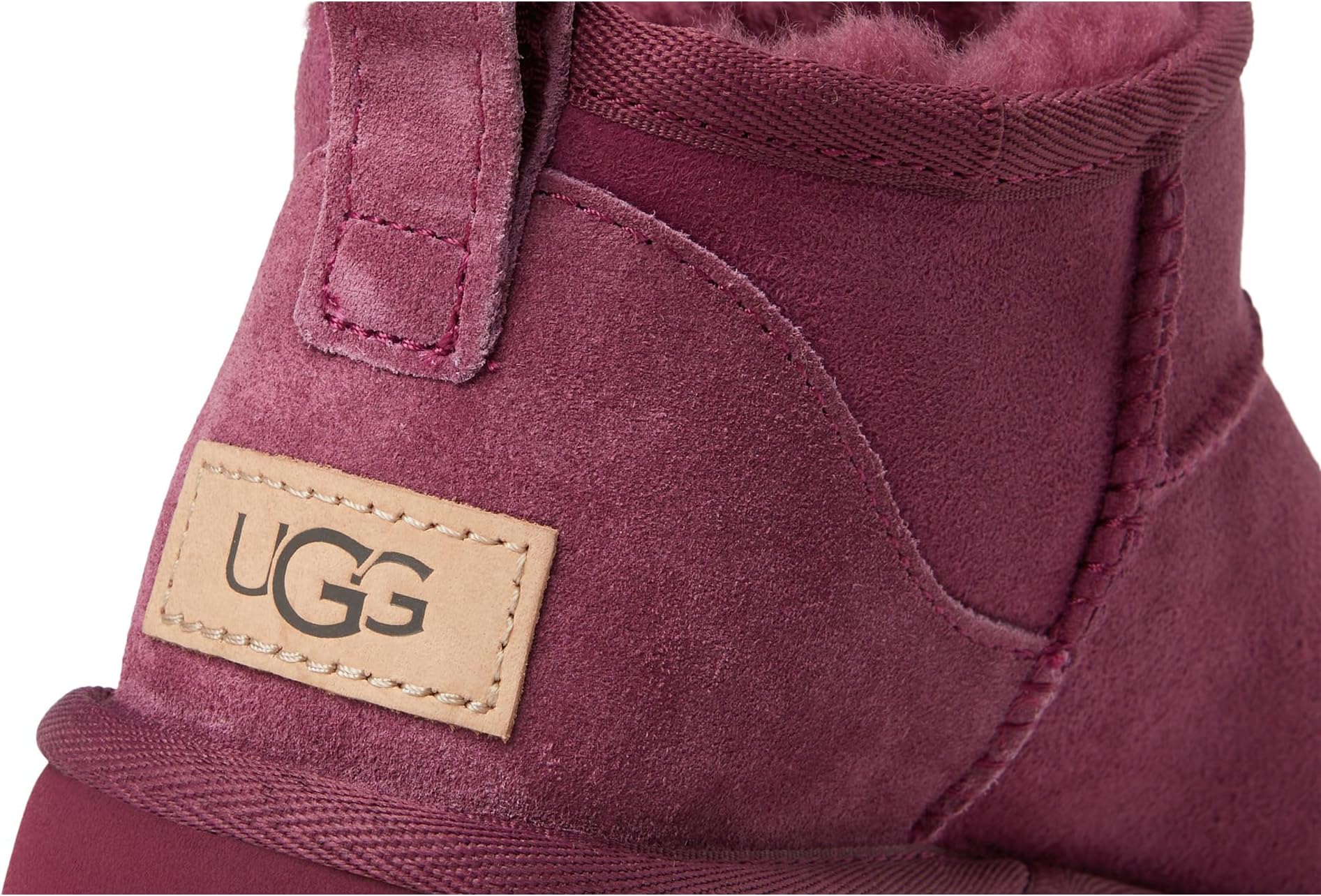 Кожаный лейбл на пятке с тисненым логотипом UGG и полиэстеровыми вставками.