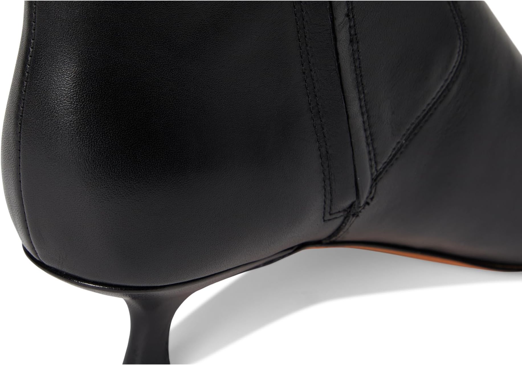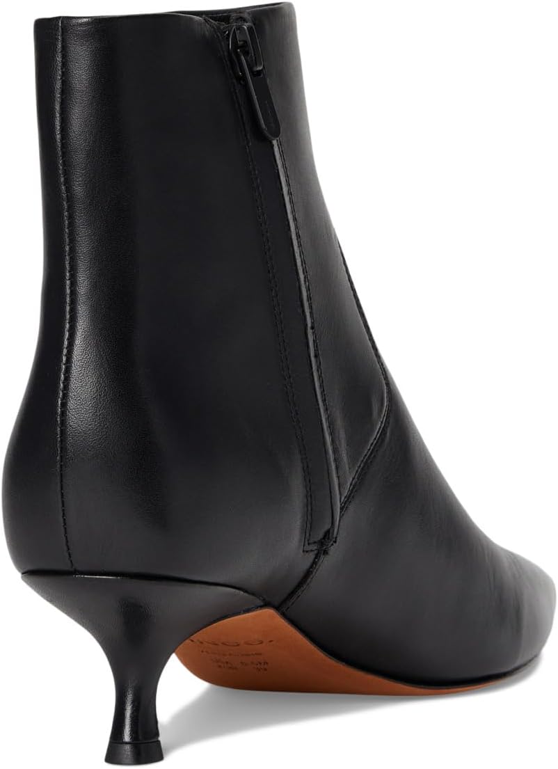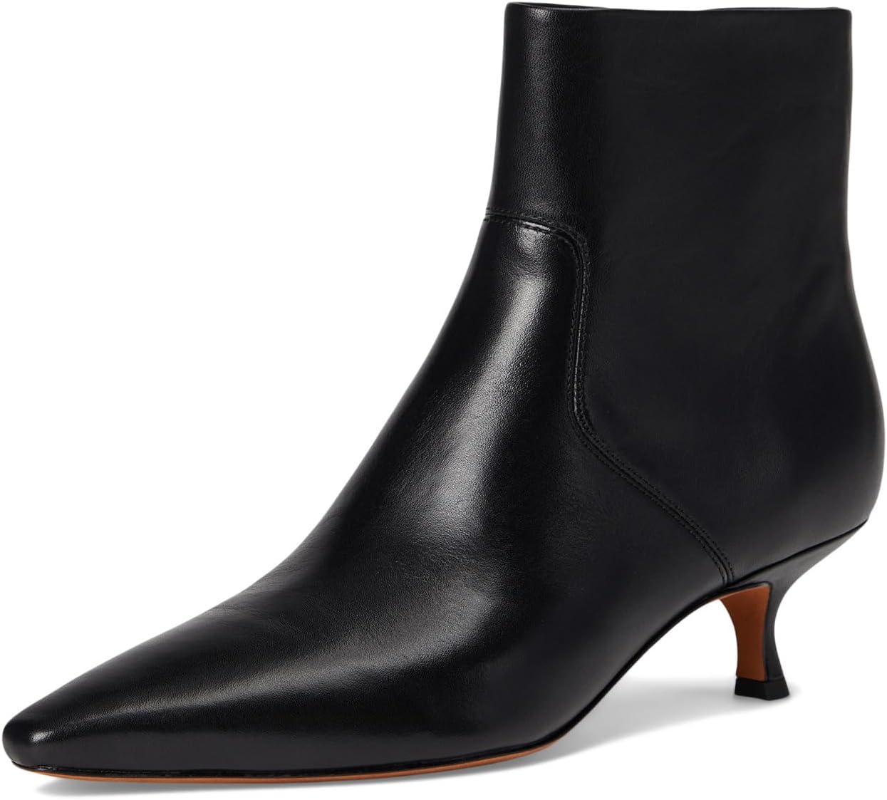 • Скромные и универсальные короткие ботинки Vince Simone Zip имеют заостренный носок и архитектурный каблук-рюмочку. Ботильоны по щиколотку изготовлены из кожи, верх и подкладка которой закупаются у кожевенных заводов, сертифицированных Leather Working Group.