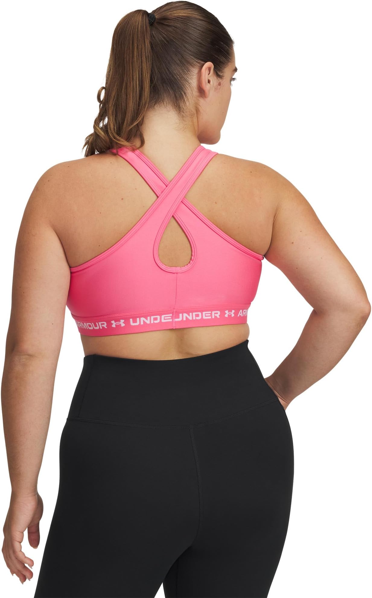 Бюстгальтер Under Armour Plus Size Crossback Mid Impact Bra, цвет Super Pink/White