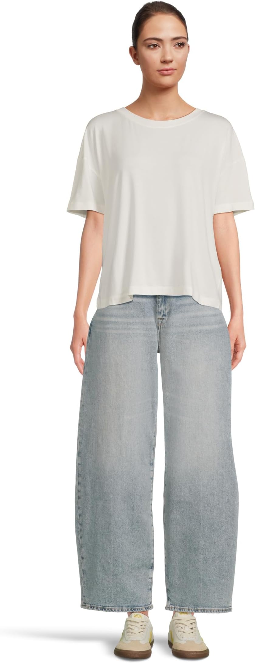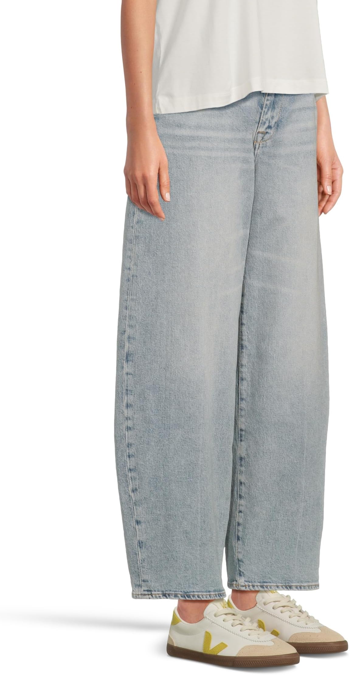 • Создайте разнообразные варианты повседневного стиля с брюками 7 For All Mankind Bonnie. Модель, которая легко надевается, застегивается на молнию и пуговицы, имеет шлевки для ремня, плоский перед, пять карманов и широкий силуэт. Джинсы с высокой посадкой и облегающим кроем имеют свободный классический крой.