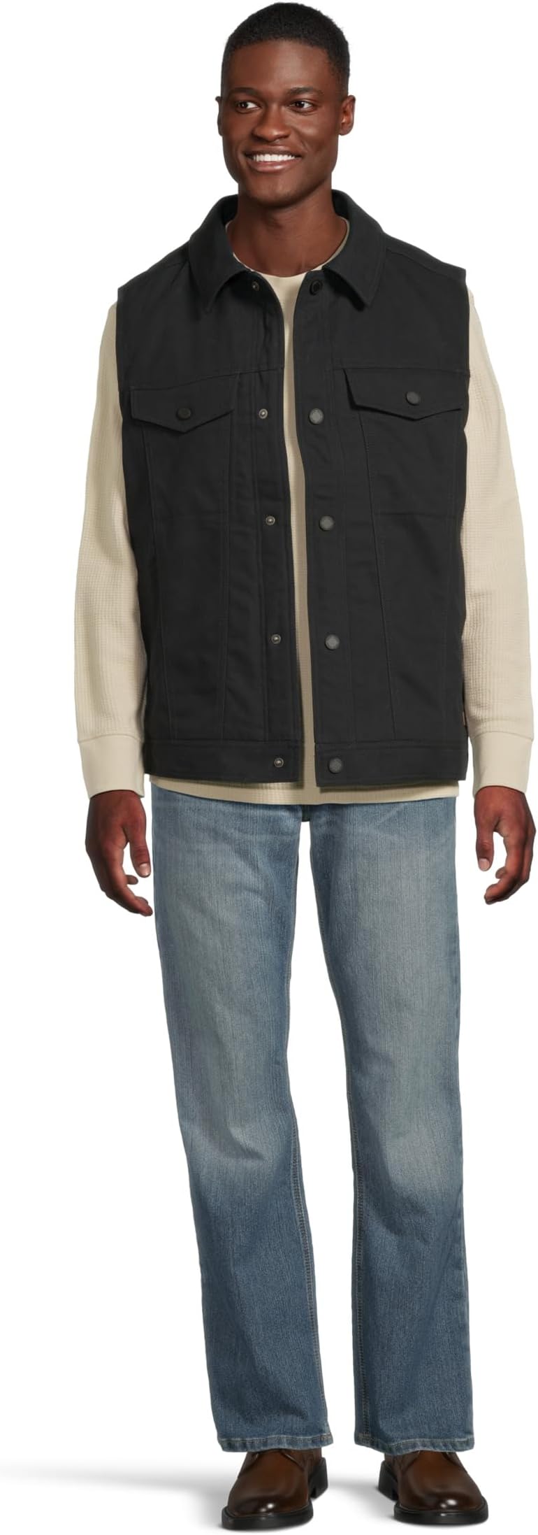 • Жилет Ariat Canvas Rancher сочетает в себе прочность и практичность с неподвластным времени стилем. Этот жилет без рукавов с классическим воротником и застежкой на кнопки спереди обеспечивает структурированный классический крой, идеально подходящий для ношения поверх привычных фланелевых рубашек или футболок. Подкладка из флиса с начесом обеспечивает уютное тепло без утяжеления, а два нагрудных кармана с клапанами создают аутентичный образ ранчера и обеспечивают удобное хранение.