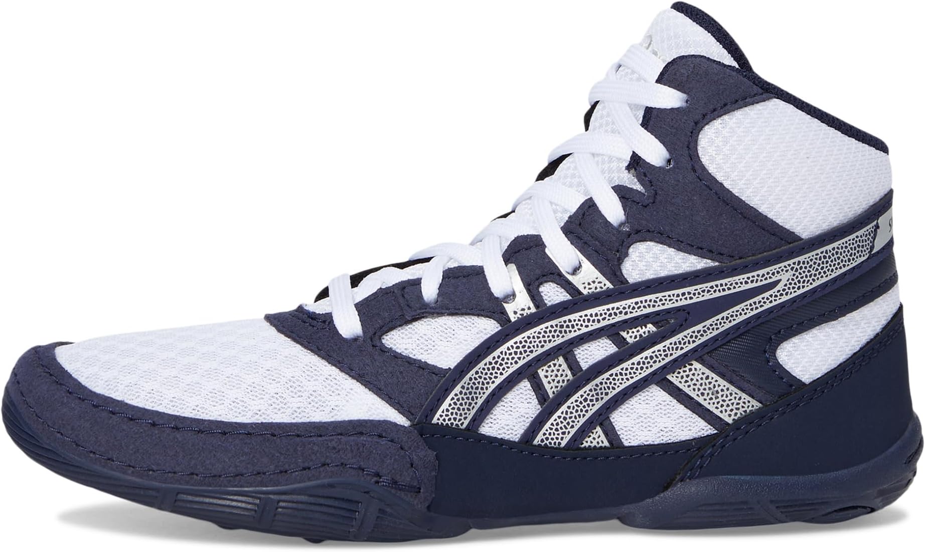 • Выйдите на татами с неудержимым стилем и мощью в борцовских кроссовках для школьников ASICS Kids SNAPDOWN 4 Grade! Созданные для юных спортсменов, готовых побеждать в каждом матче, эти высокие кроссовки сочетают в себе прошитые накладки и дышащую сетчатую подкладку для длительного комфорта и вентиляции во время самых интенсивных схваток. Обернутая боковая и медиальная структура надежно фиксирует стопу, давая вам уверенность для выполнения быстрых бросков и ловких уходов. Шнуровка обеспечивает индивидуальную посадку, а прочная подошва из синтетической резины с уникальным круговым рисунком обеспечивает максимальное сцепление с ковром. От тренировочных упражнений до моментов чемпионата, кроссовки SNAPDOWN 4 созданы, чтобы выдержать все требования сезона, сохраняя вашу легкость и лазерную концентрацию на победе.