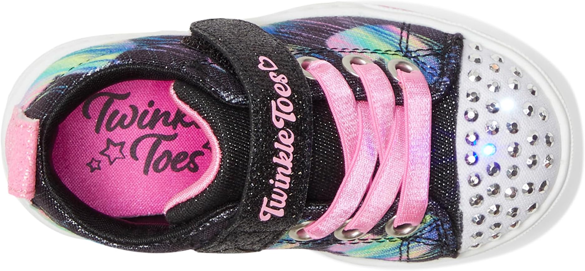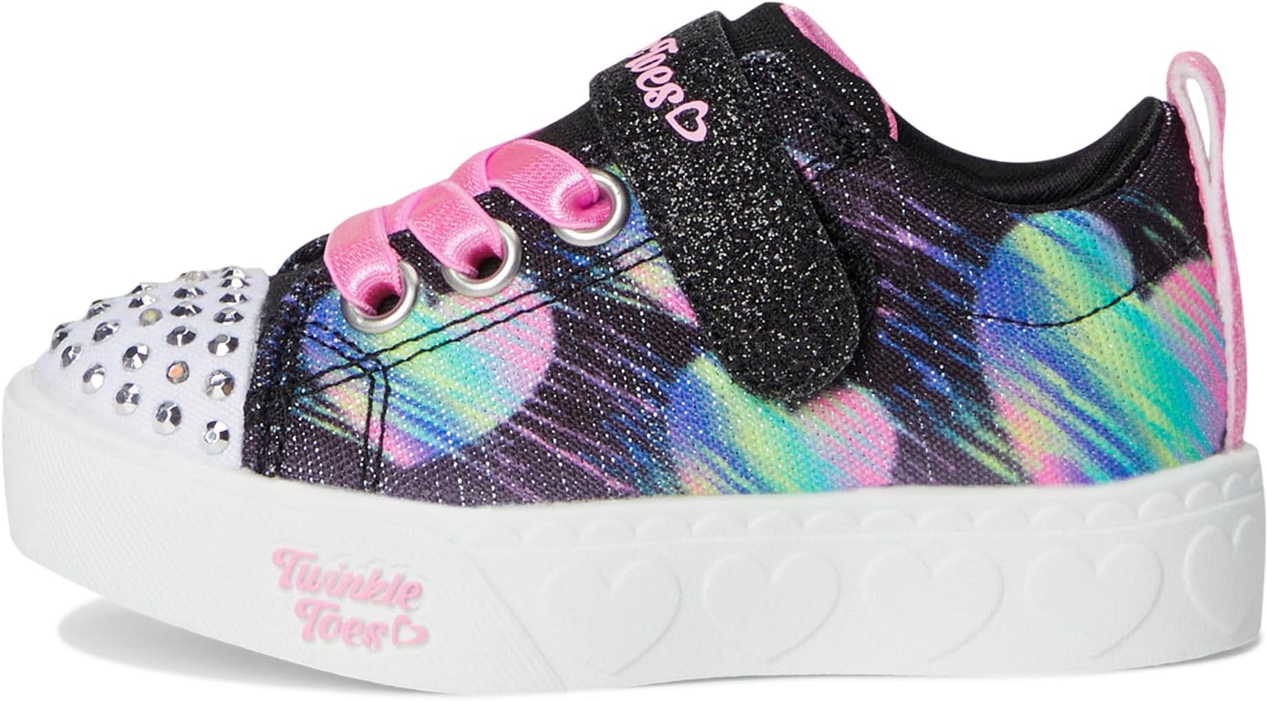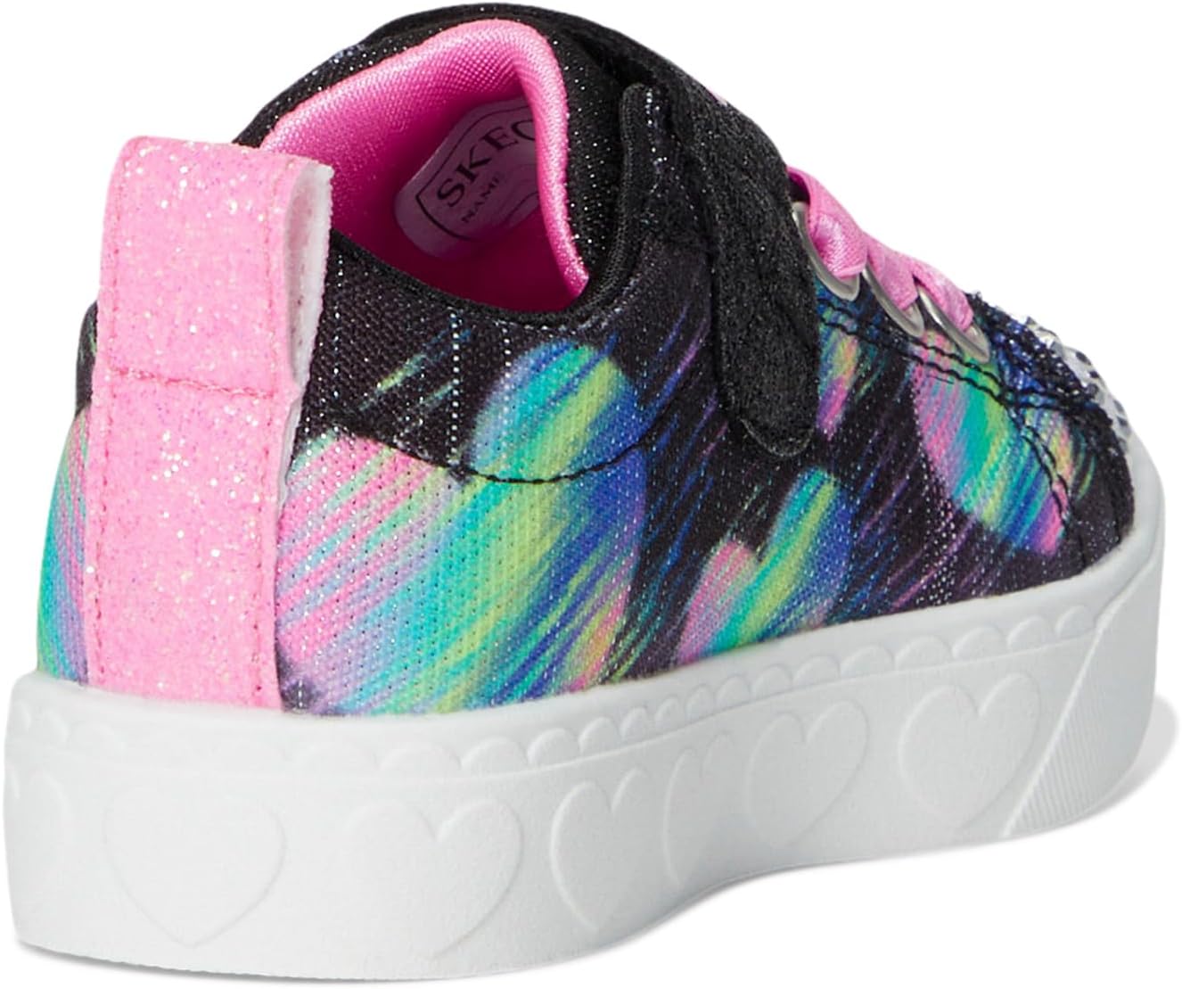 • Выходите на улицу в этих мерцающих кроссовках SKECHERS KIDS Heart Steps 314621N Twinkle Toes Heart Steps. Эти мерцающие светящиеся кроссовки с верхом из парусины с принтом в виде сердца, адаптивной застежкой для удобной посадки, мягкой стелькой, регулируемым ремешком на подъеме и носком, украшенным светящимися стразами.