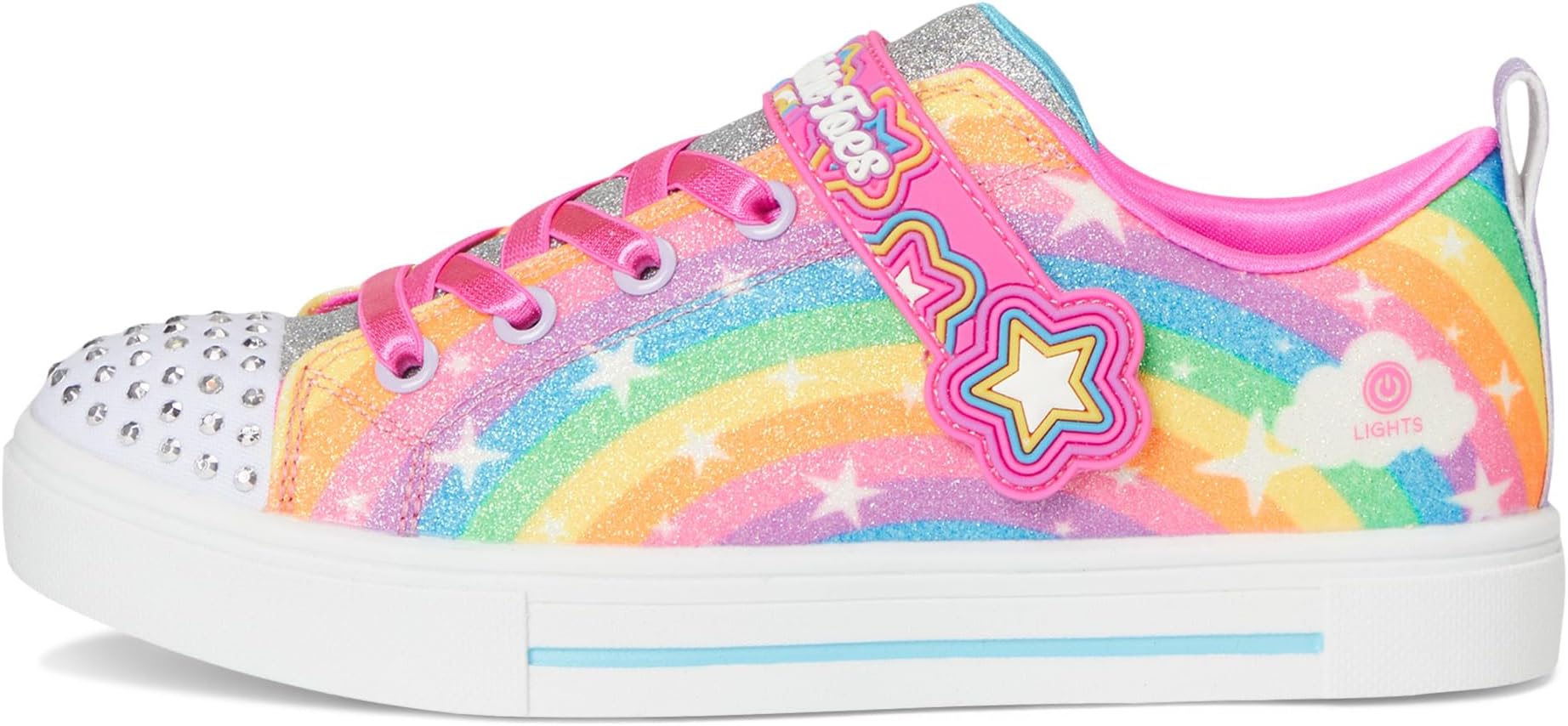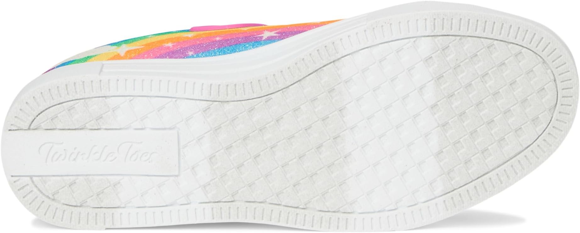 • Осветите игровую площадку сверкающей радугой в кроссовках SKECHERS KIDS Twinkle Sparks 314829L. Эти забавные светящиеся кроссовки имеют верх из ткани с блестящим радужным принтом и блестящей отделкой, атласные эластичные шнурки, регулируемый ремешок на подъеме и носок Twinkle Toes, украшенный светящимися стразами.