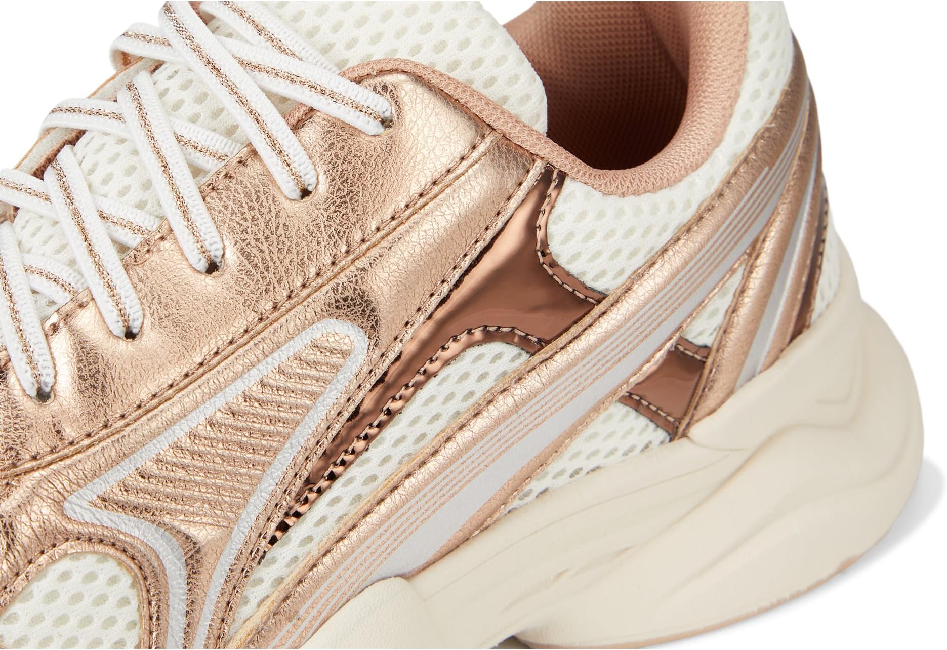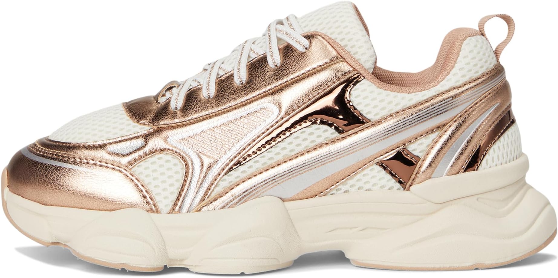• Кроссовки Steve Madden Kids Radley сочетают в себе спортивный стиль и гламурный шик благодаря дышащему сетчатому верху и блестящим металлическим акцентам. Эти кроссовки на шнуровке изготовлены из резиновой стельки и подкладки из синтетического каучука. Петелька на пятке позволяет легко надевать и снимать кроссовки. Эти низкие кроссовки с массивной подошвой из синтетического каучука и ярким дизайном созданы для стильных детей, которые всегда в движении.