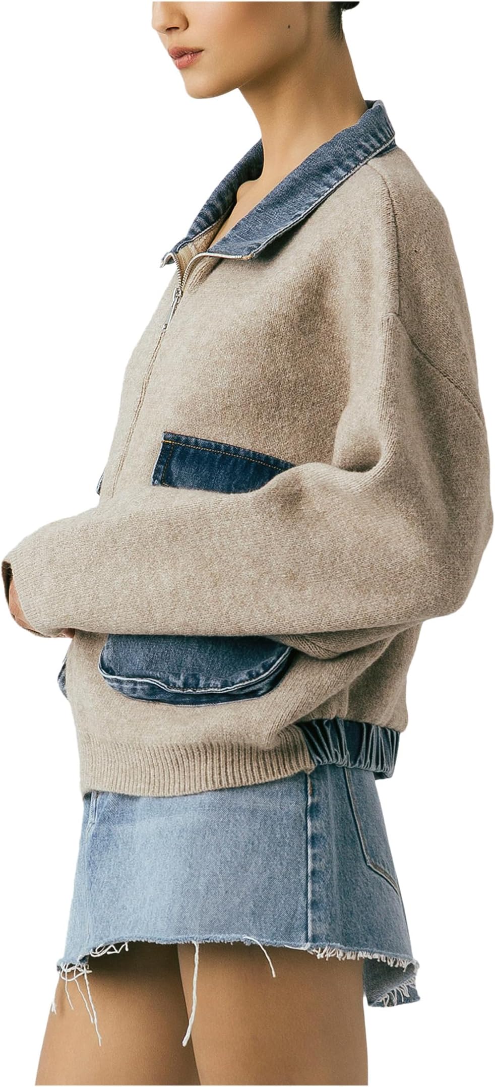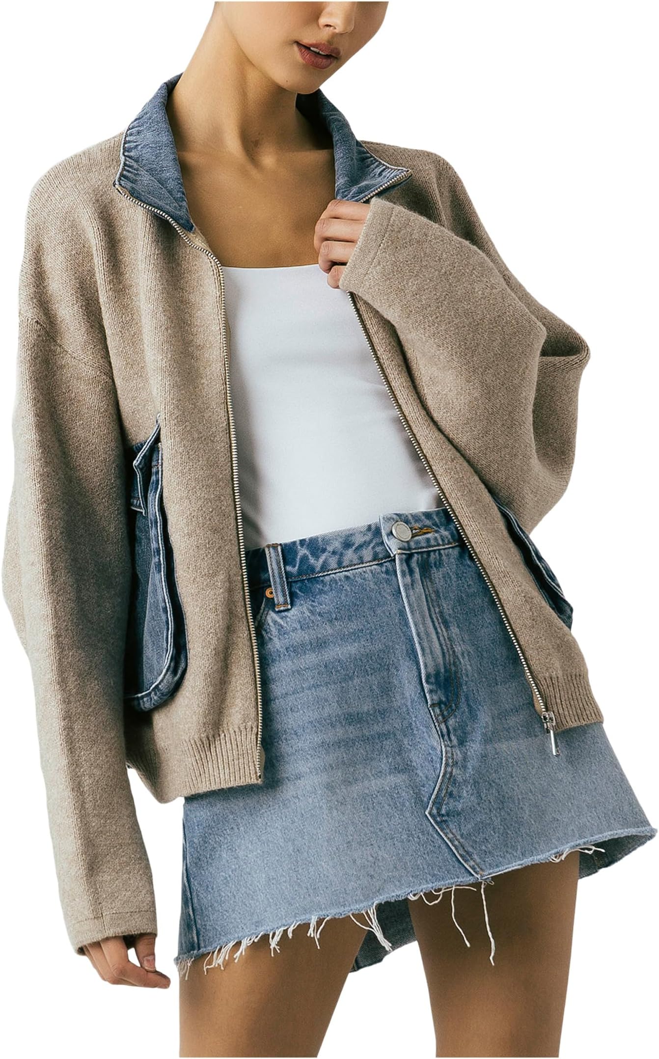 • Куртка-бомбер [BLANKNYC] Glow Up Sweater — это идеальное сочетание городского стиля и универсальных вариантов. Она отличается контрастным воротником и двумя большими накладными карманами с клапанами на пуговицах.