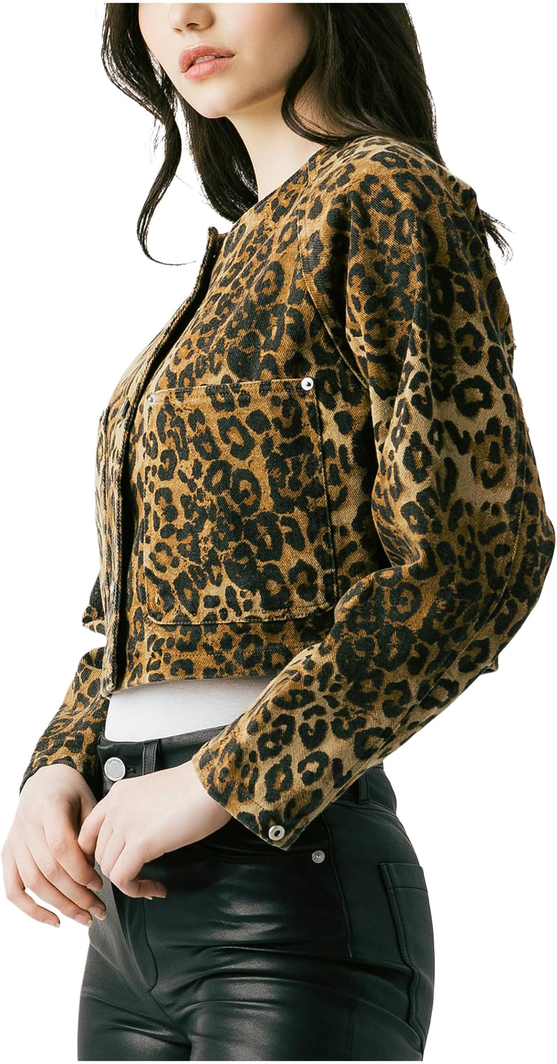 • Укороченная куртка Blank NYC Hear Me Roar с леопардовым принтом, созданная для ярких впечатлений, идеально подходит для прогулок. Она имеет круглый вырез горловины с застежкой на пуговицы спереди, длинные рукава, укороченную длину и уникальный принт по всей поверхности.