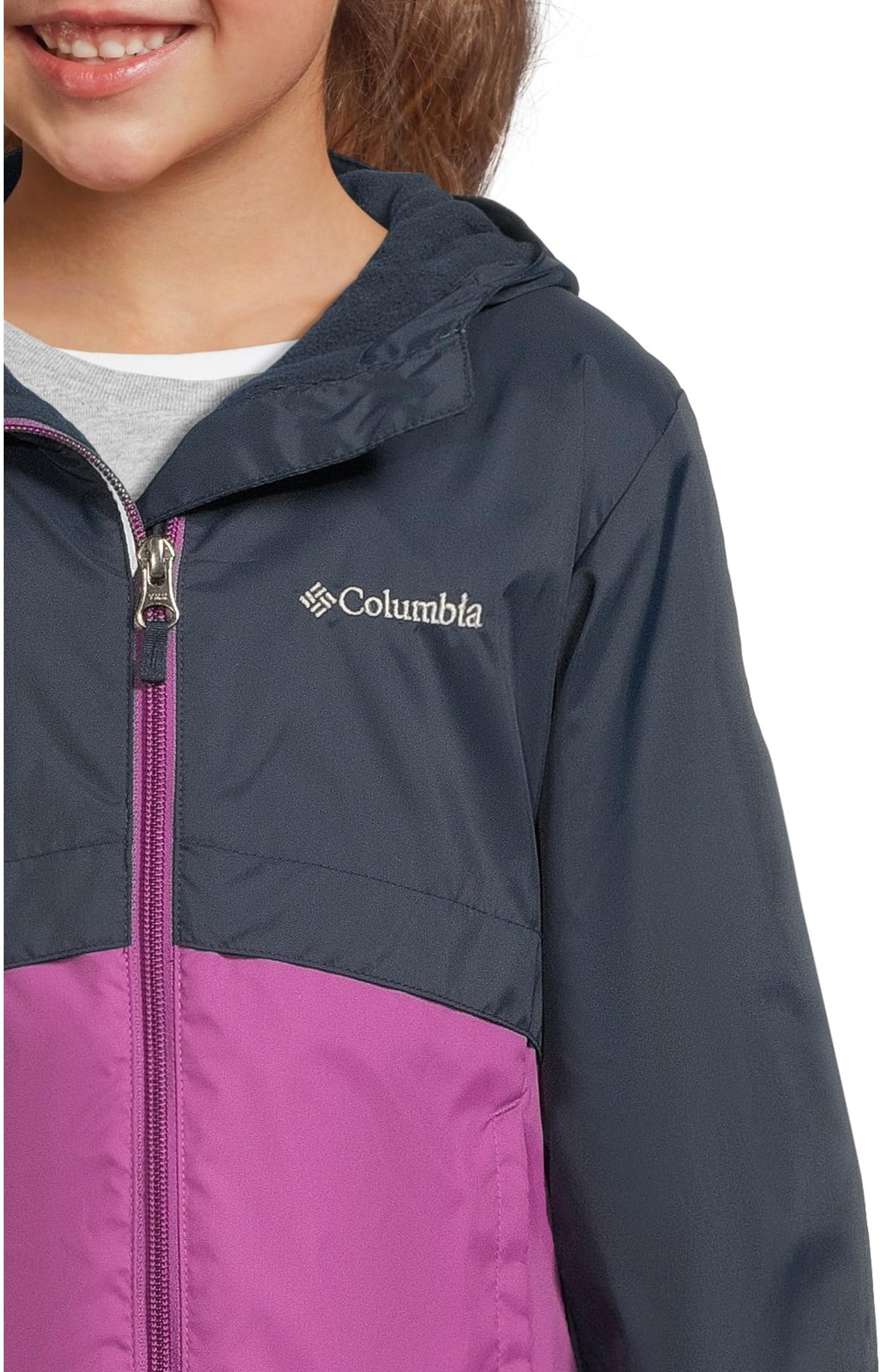 • Куртка Columbia Kids Rain-Zilla II с флисовой подкладкой обеспечит вашему ребенку тепло, сухость и комфорт. Водонепроницаемая ткань куртки отводит воду, а застежка-молния спереди защищает от непогоды. Эта куртка на молнии имеет длинные рукава, эластичные манжеты, пришитый регулируемый капюшон и прямой подол. Подготовьте своего ребенка к комфортному дню на прогулке в этой куртке с капюшоном.