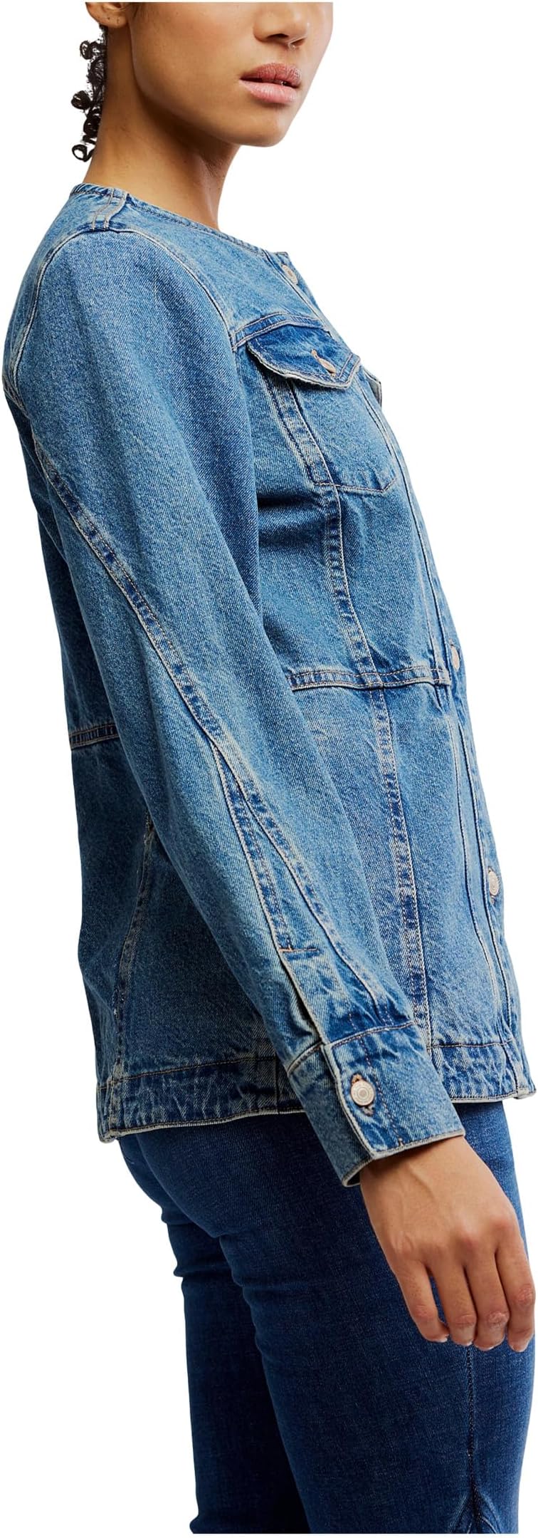 • Идеально сшитая, джинсовая куртка Free People Lula отличается удлиненным кроем с продуманными швами для идеальной посадки. Эта джинсовая куртка из коллекции We The Free имеет длинные рукава, манжеты на пуговицах, круглый вырез горловины и прямой подол. Эта куртка без воротника с потертой отделкой имеет застежку на пуговицы спереди для удобства ношения. Эта куртка на пуговицах из хлопка идеально дополнит ваши платья и повседневные образы.