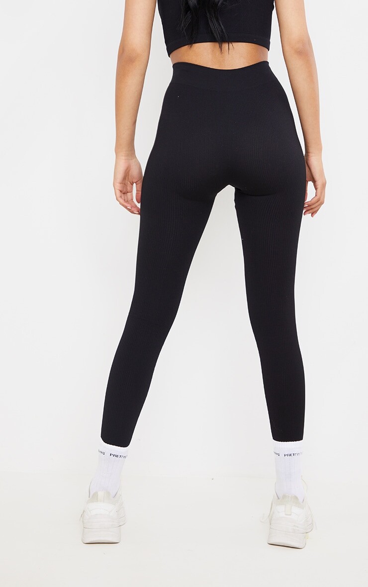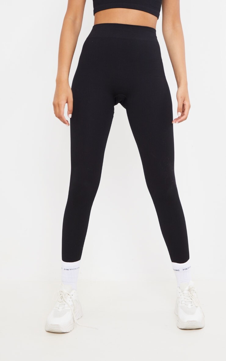 PrettyLittleThing Высокие черные структурированные леггинсы в рубчик