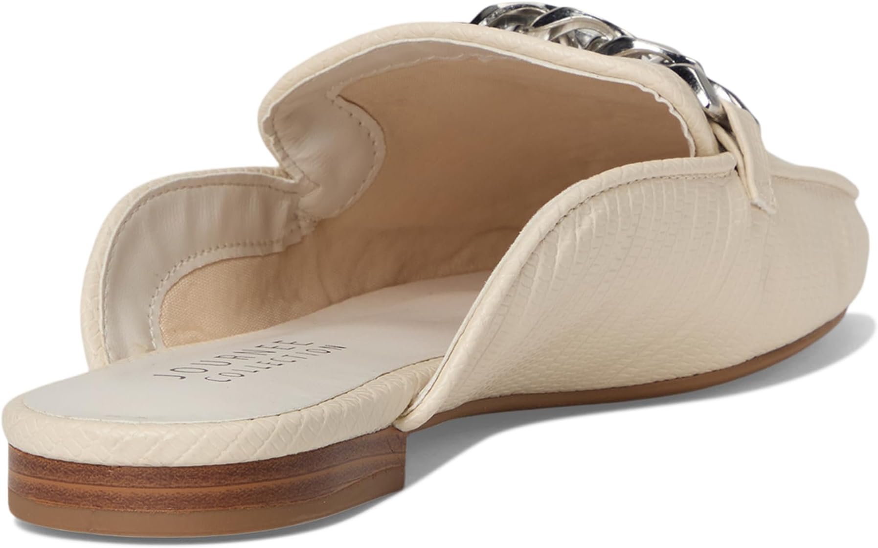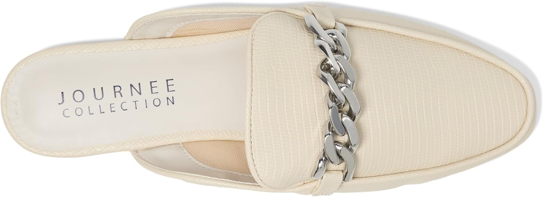 • Универсальные мюли Hazina от Journee Collection, которые подойдут для ваших образов с понедельника по воскресенье. Эти мюли с квадратным носком украшены серебристой цепочкой и имеют зазубренный верх. Верх из веганской кожи с текстурой под ящерицу формирует силуэт, а стелька высотой 4 фута делает их невероятно удобными. В Journee вы будете выглядеть так же профессионально, как ваш начальник на работе, и в стильной обуви, когда выйдете в свет.