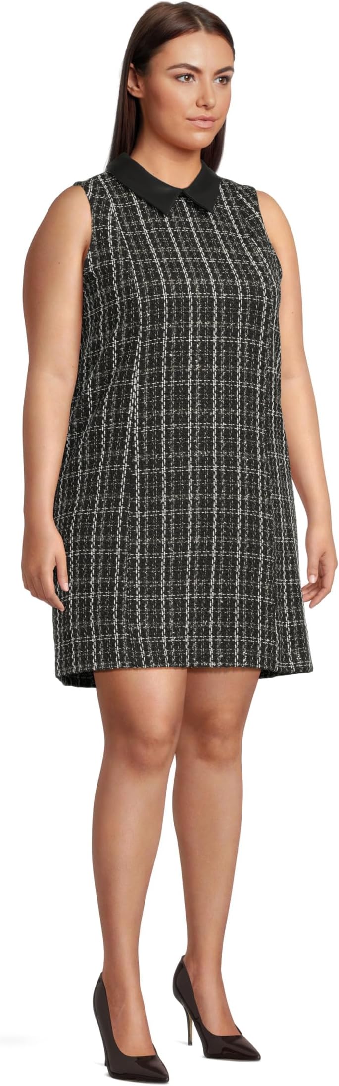 Платье Calvin Klein Sleeveless Tweed Sheath With Collar, цвет Black Multi 7 805₽