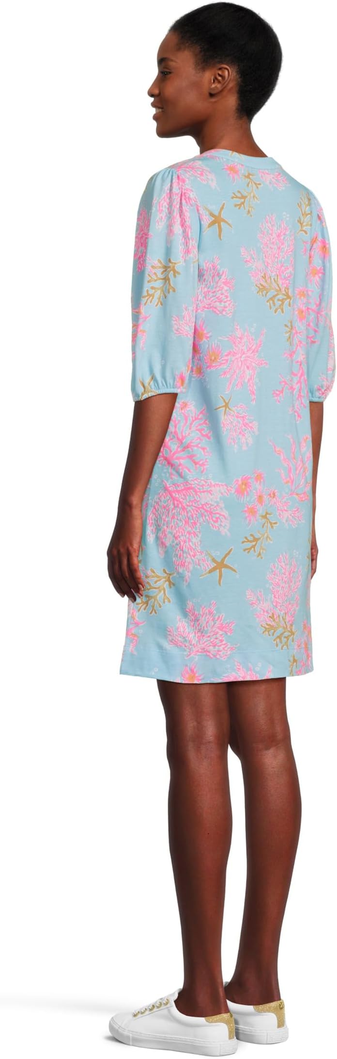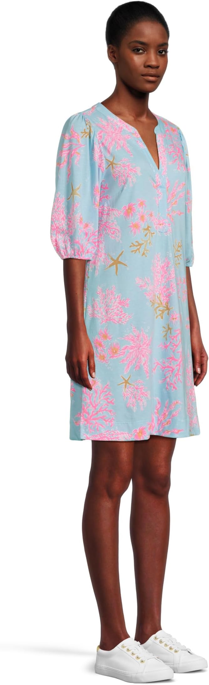 • Создайте непринужденный образ с платьем Lilly Pulitzer Colson. Этот фасон с вырезом-поповер отличается вырезом-лодочкой и функциональной планкой до середины бедра, что обеспечивает непринужденный и непринужденный образ. Рукава до локтя дополнены эластичными манжетами для придания формы, а длина выше колена придает игривости. Платье с легким принтованным рисунком идеально подойдет для дней, когда так важен комфорт и очарование.