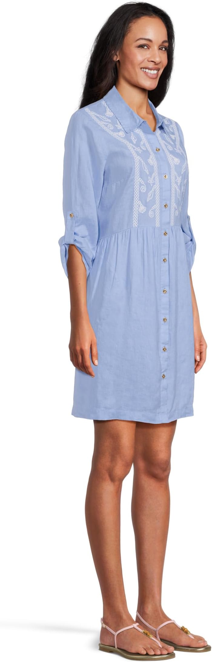 • Платье Lilly Pulitzer Shaela — это стильное и элегантное изделие, созданное для комфорта и стиля. Это платье длиной выше колена имеет свободный, свободный крой, мягко облегающий тело, рукава три четверти с отворотами и классический воротник. Застёжка на пуговицы спереди добавляет изысканности, а яркий цветочный принт по всей длине добавляет нотку элегантности этому повседневному фавориту.