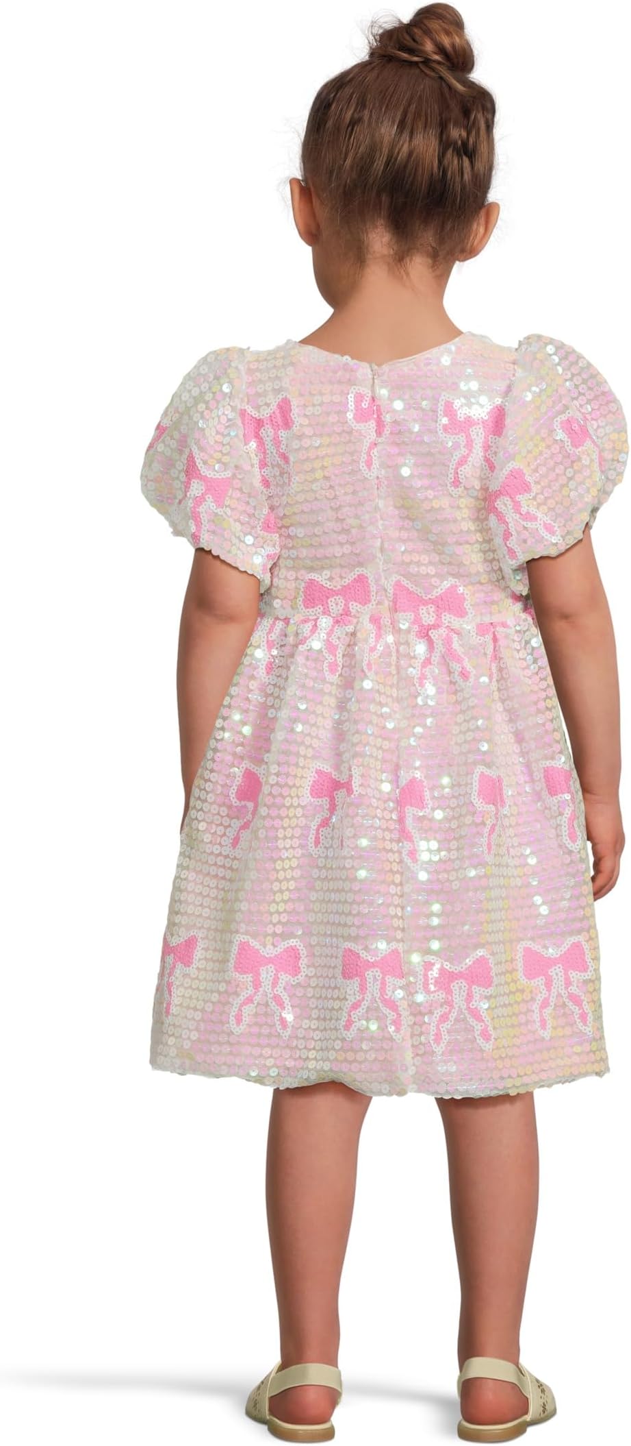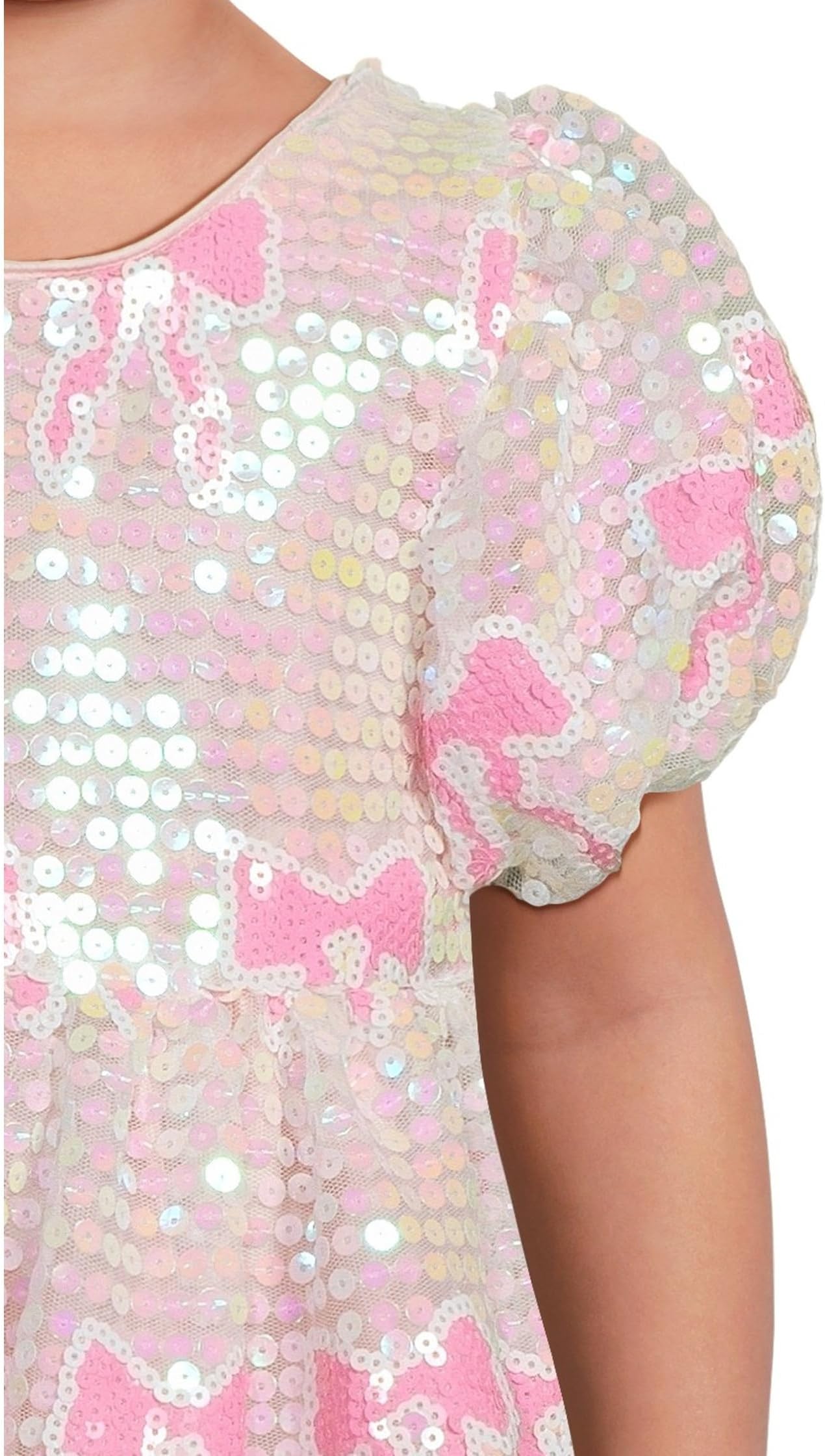 • Окунитесь в мир блеска с платьем Sequin Bow, созданным для юной модницы, которая любит выделяться. Украшенное яркими розовыми пайетками и игривыми силуэтами пони, это платье ослепительно красиво смотрится на каждом шагу и идеально подходит для любого торжества. Очаровательный бант на талии добавляет очаровательного девичьего очарования, а рукава-буфы создают образ современной принцессы.