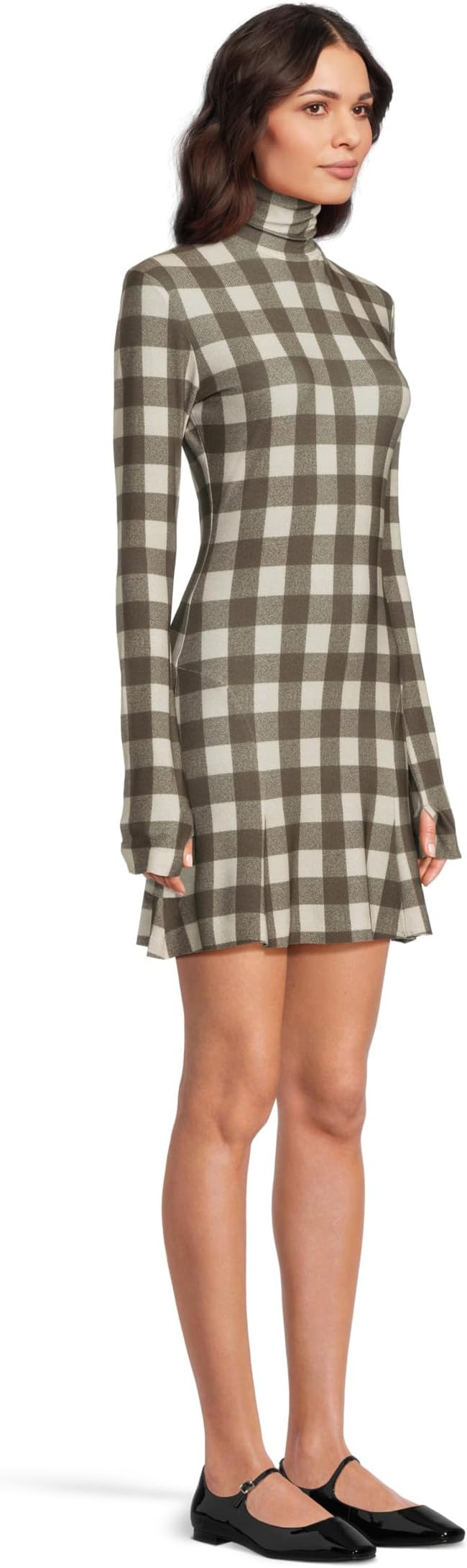 Платье Norma Kamali Long Sleeve Turtle Fishtail Mini Dress, цвет Bark Box Plaid 22 608₽