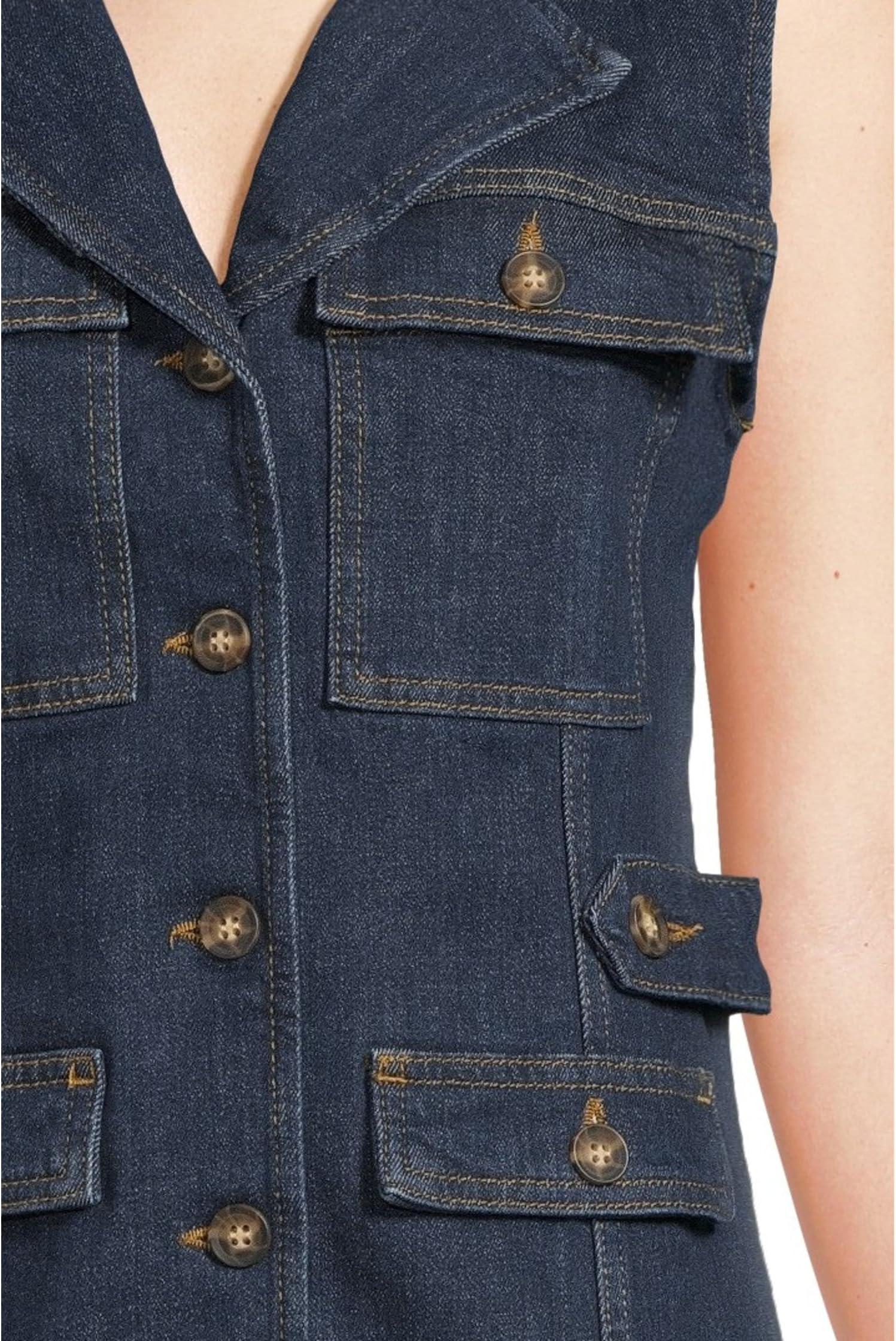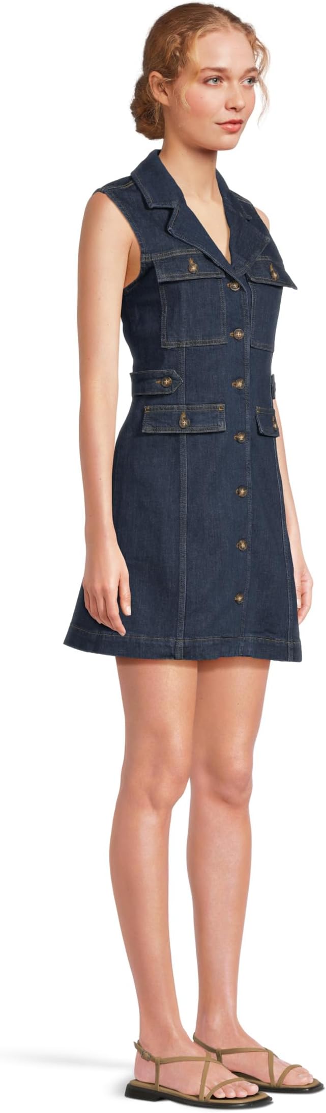• Представляем вам платье Paige Andria – стильное джинсовое платье в стиле сафари, которое вы будете носить снова и снова. Это мини-платье без рукавов с четырьмя передними карманами, воротничком-стойкой, хлястиками для акцента на талии, контрастной строчкой и пуговицами в черепаховой оболочке. Платье Andria из супермягкого тёмного денима идеально подходит для ношения с босоножками на платформе или кроссовками.