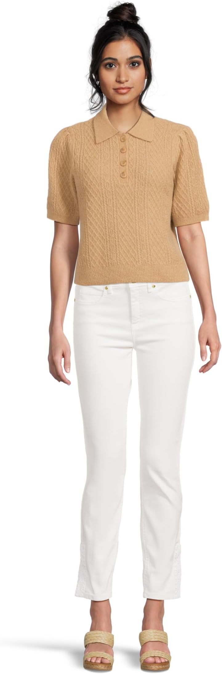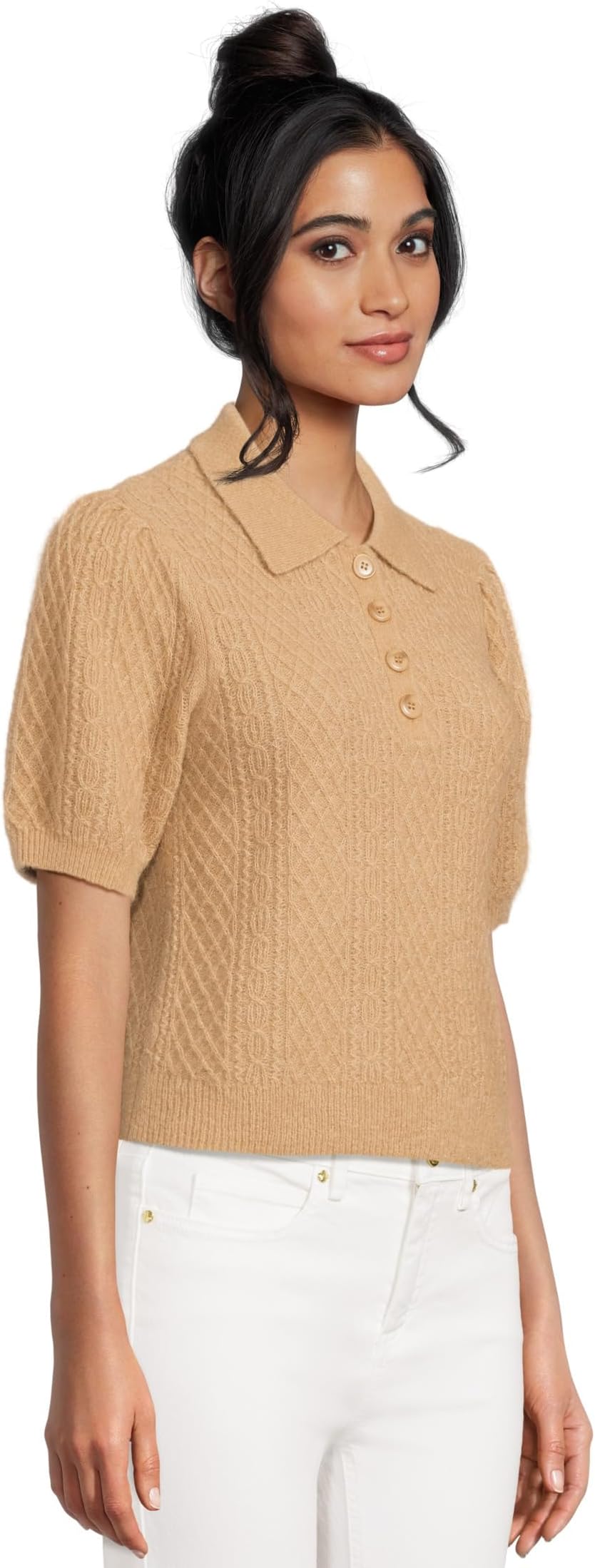 • Выглядите стильно и непринужденно в топе-поло Lilla P Mixed Stitch Elbow Sleeve Polo. Изготовленный из смеси шерсти альпаки Airspun, этот легкий и воздушный топ, который легко надевать, обеспечивает исключительное тепло, не создавая лишнего объема. Модель выполнена в яркой цветовой гамме. Модель отличается косым плетением, горловиной хенли, застежкой на четверть пуговицы с пуговицами, окрашенными в тон, что придает ей изысканный, но непринужденный вид. Короткие рукава-фонарики и прямой подол. Сочетайте его с брюками из атласного твила или с брюками из хлопкового твила для создания повседневного образа.