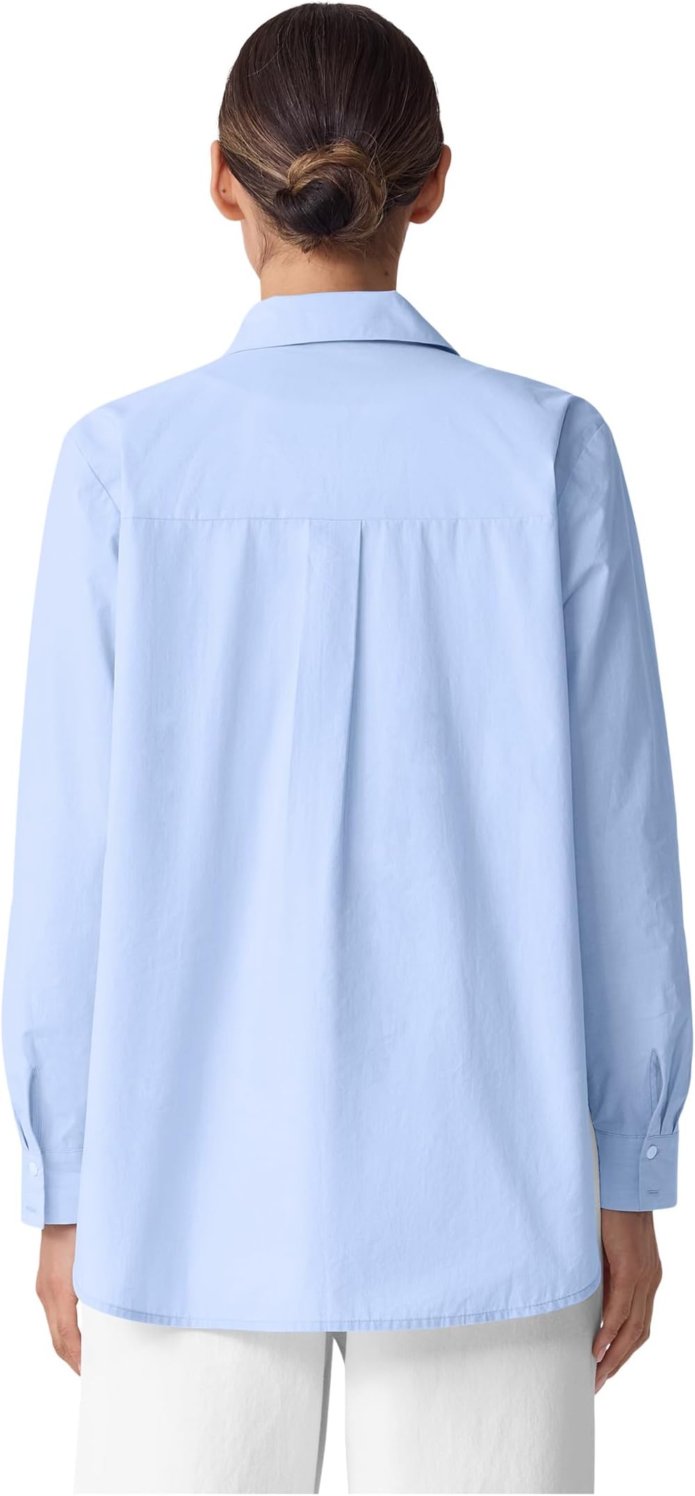 • Удлиненная рубашка Eileen Fisher Striped Poplin Classic Collar — это полосатая версия гладкой, плотной ткани из тонкого органического хлопка. Легкая, воздушная и дышащая. Классический воротник, длинные рукава, застежка на пуговицы спереди и кокетка со складкой по центру спинки.