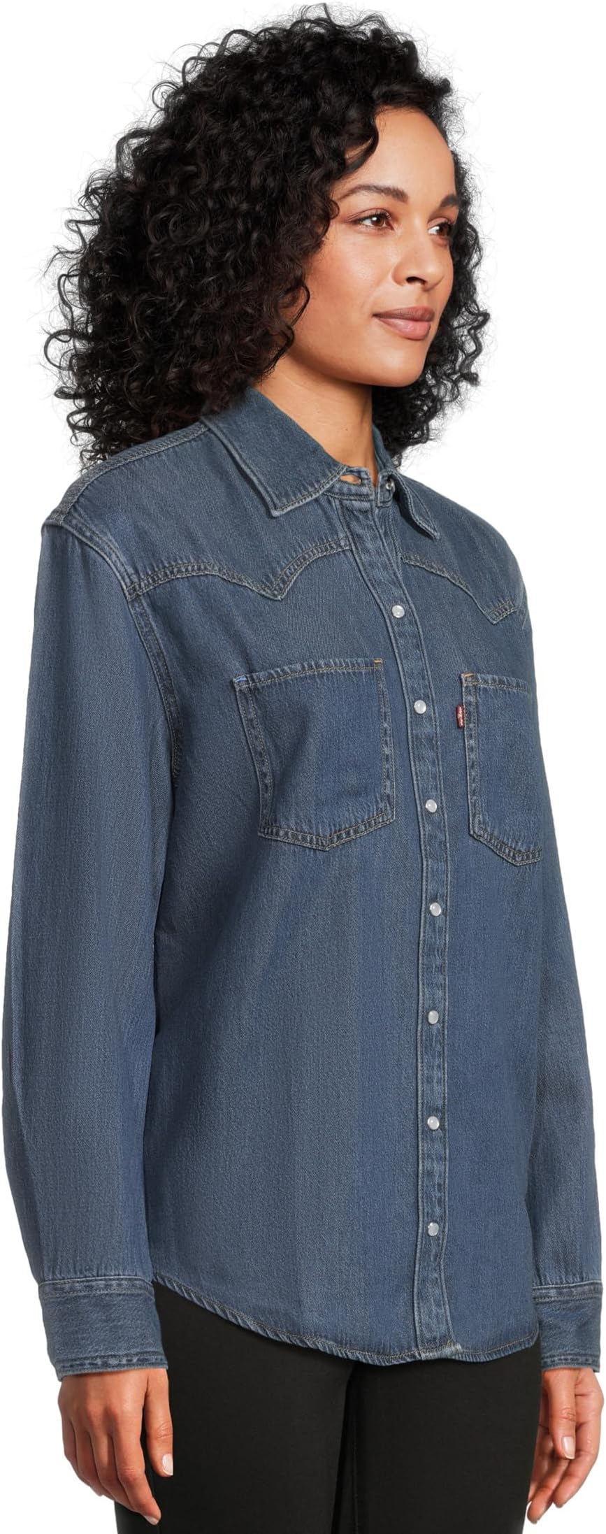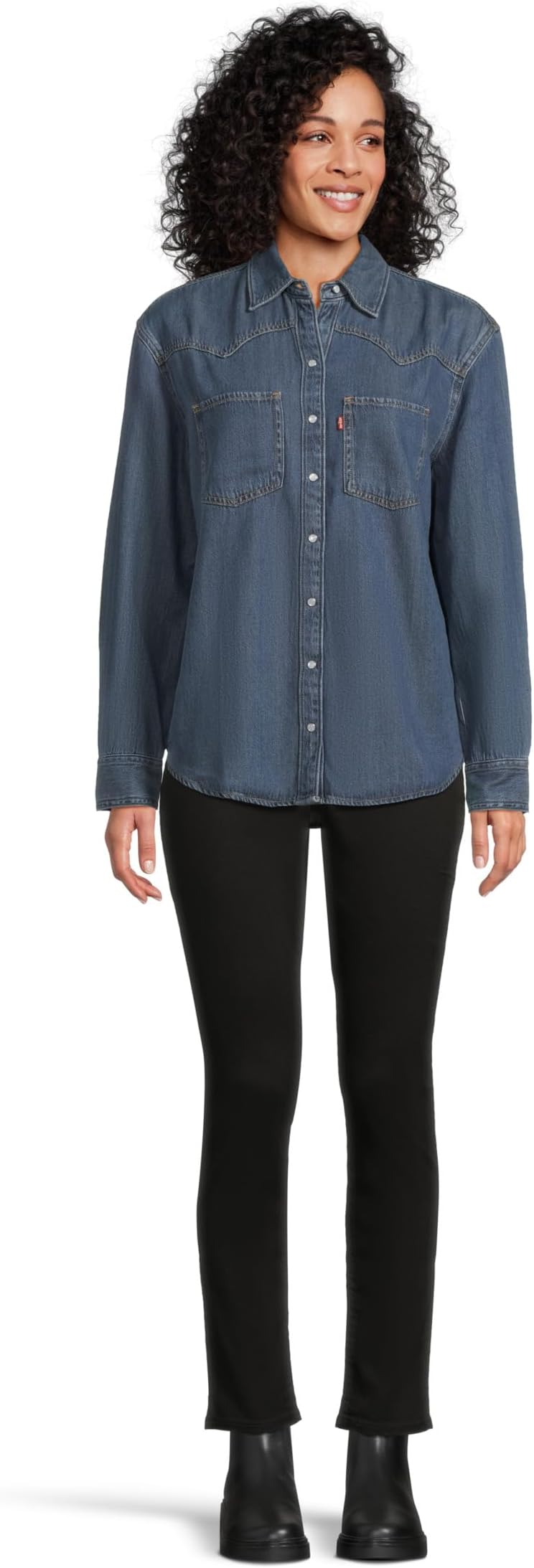 • Создайте стильный образ, не прилагая особых усилий, надев эффектную рубашку Levi'sPremium Teodora Western. Рубашка имеет воротник-стойку, длинные рукава с манжетами на пуговицах, застежку на пуговицы спереди и асимметричный подол.