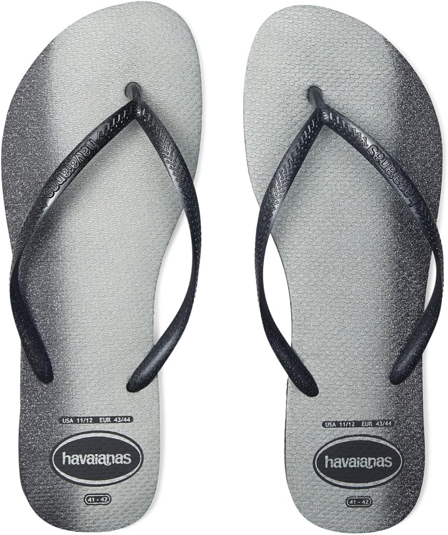 • Сандалии Havaianas Slim Gloss Flip Flop Sandal отличаются подошвой, покрытой блестками, и ремешками с блестками. Эти сандалии ослепляют при каждом шаге.