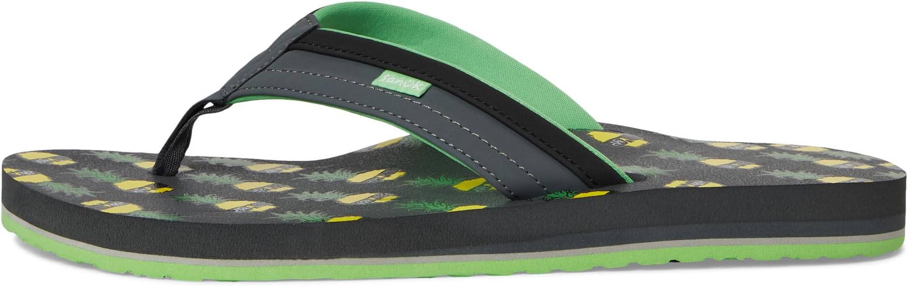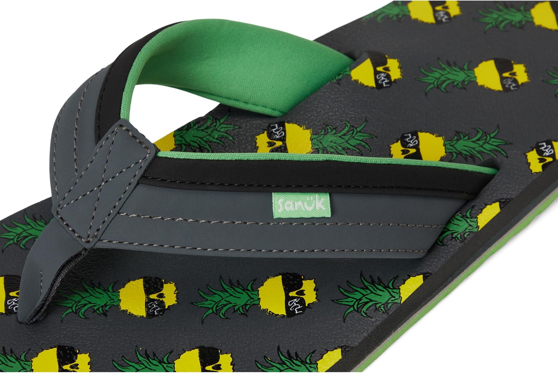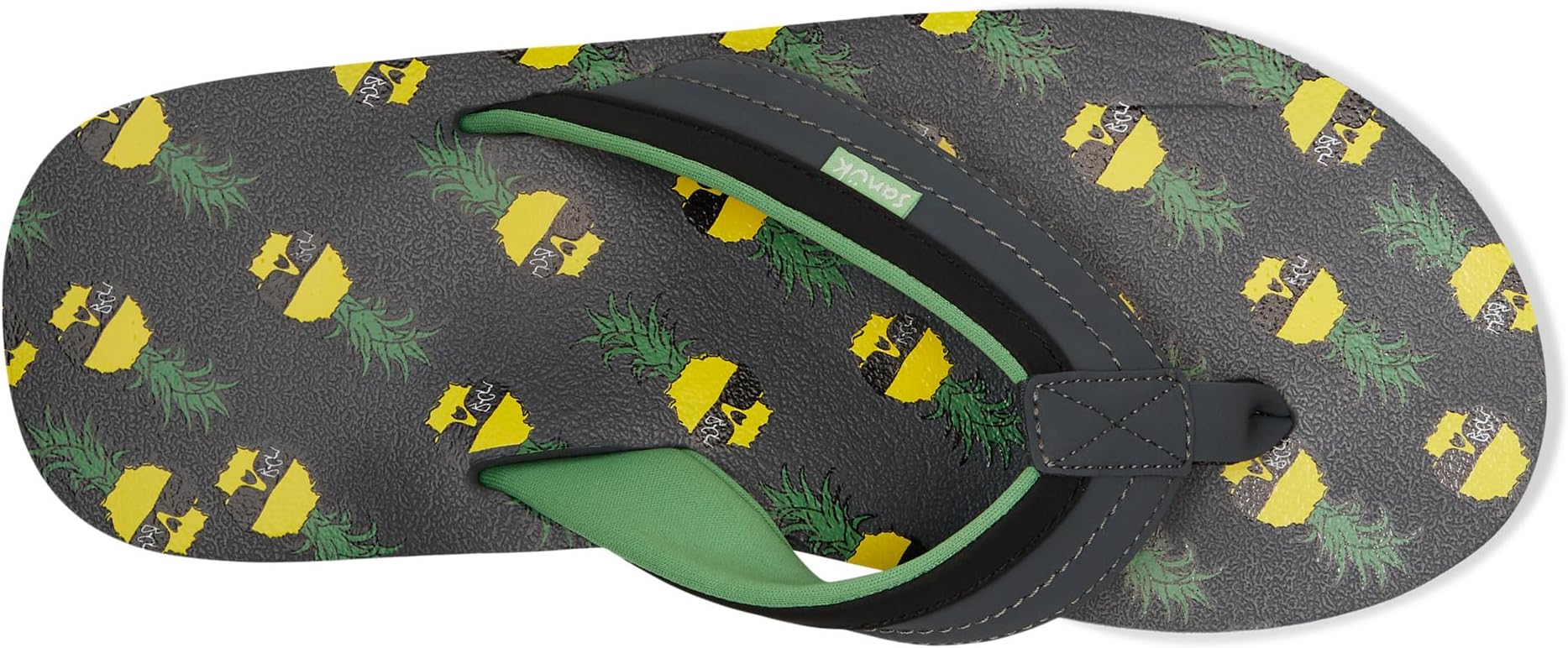 • Слипоны Sanuk Ziggy X Ben Gravy — это удобные, водонепроницаемые сандалии, созданные для максимального комфорта и хорошего настроения. С ремешком из искусственной кожи и мягкой подкладкой из смеси полиэстера и хлопка, эти слипоны украшены фирменным рисунком ананаса, вдохновленным фирменным стилем серфера Бена Грейви. Стелька из мягкого пеноматериала с высоким отскоком обеспечивает мягкую амортизацию и поддержку свода стопы, а губчатая резиновая подошва с протектором Happy U, на 53% состоящая из переработанных материалов, обеспечивает легкое сцепление и уменьшает следы от удара.