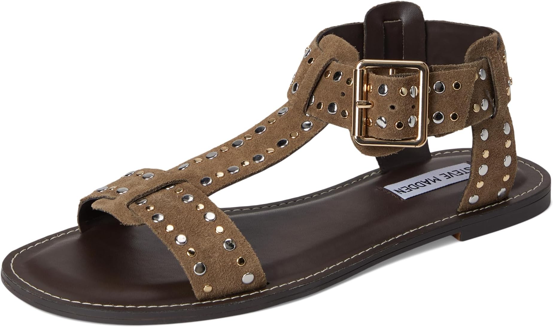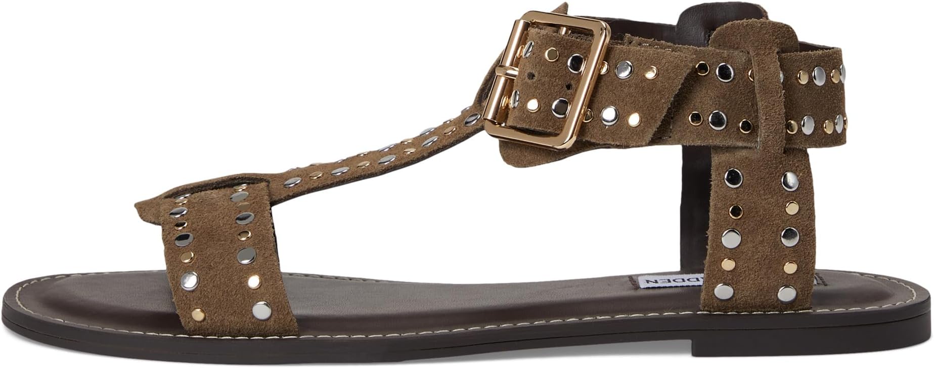 • Минималистская интерпретация классических сандалий-гладиаторов, Steve Madden Brazinn — это легкие плоские сандалии с широкими ремешками, которые фиксируются вокруг щиколотки и стопы. Дополните свои повседневные наряды этими элегантными босоножками, добавив им нотку изысканного бохо-стиля.