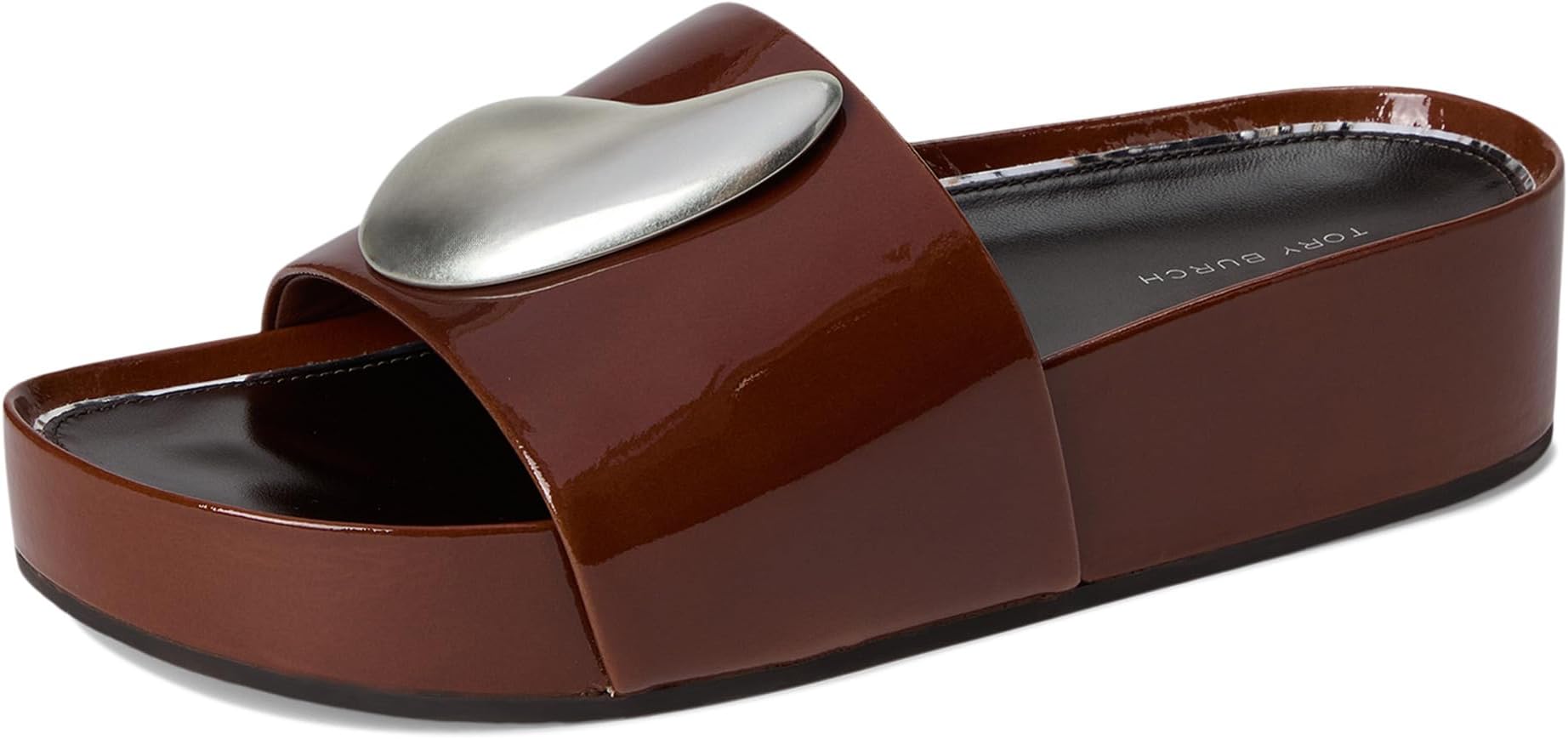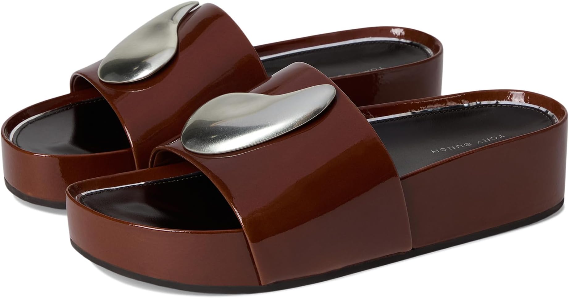 Сандалии Tory Burch Patos Platform Slide, цвет Russet Brown/Silver