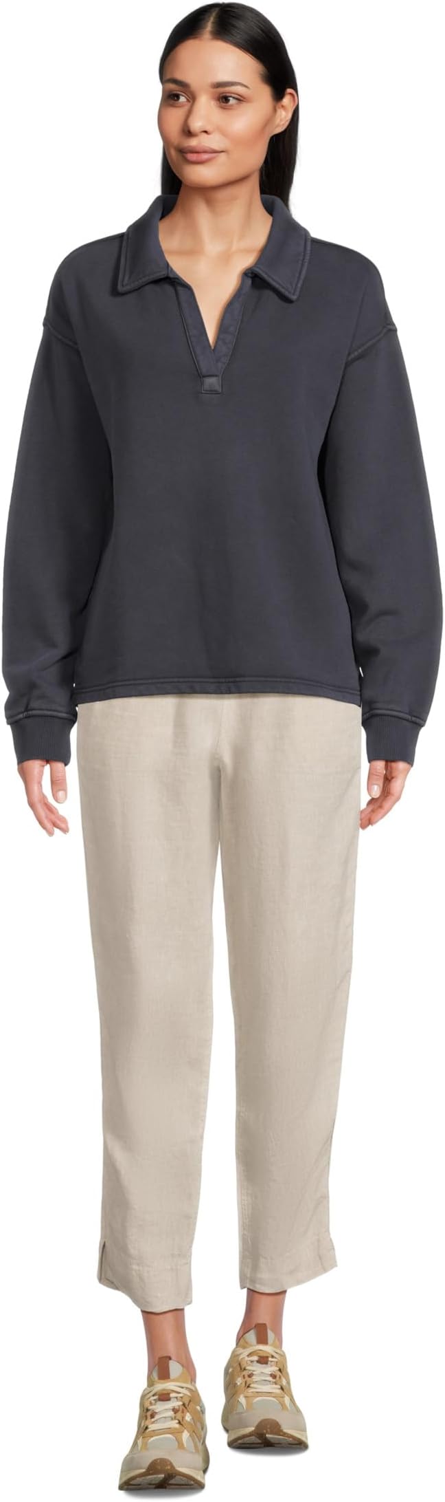 • Свитшот-поло LLBean Sunwashed с разрезным воротом и современным свободным кроем обеспечивает непринужденный комфорт. Он имеет воротник-поло, V-образный вырез, спущенную линию плеча и длинные рукава с ребристыми манжетами для дополнительного комфорта и свободы движений.