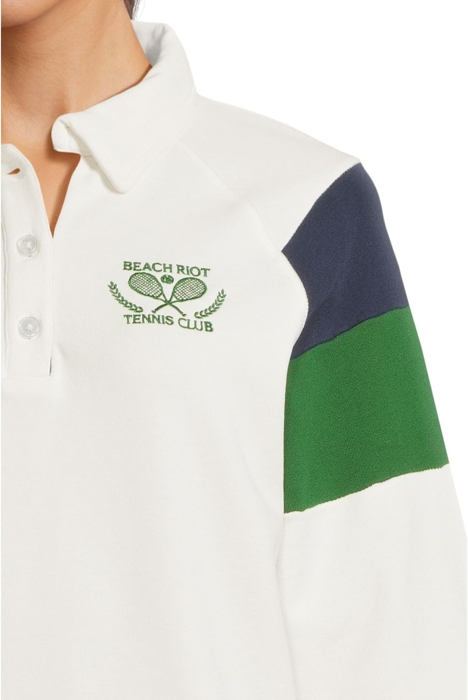 • Топ Beach Riot Bennett Top имеет воротник с застежкой на четверть пуговицы, ребристой отделкой и фирменным логотипом на левой стороне груди. Дополненный цветными блоками на плечах, топ Bennett Top обеспечивает свежий, строгий вид, который легко переходит от повседневных прогулок до послематчевого стиля.