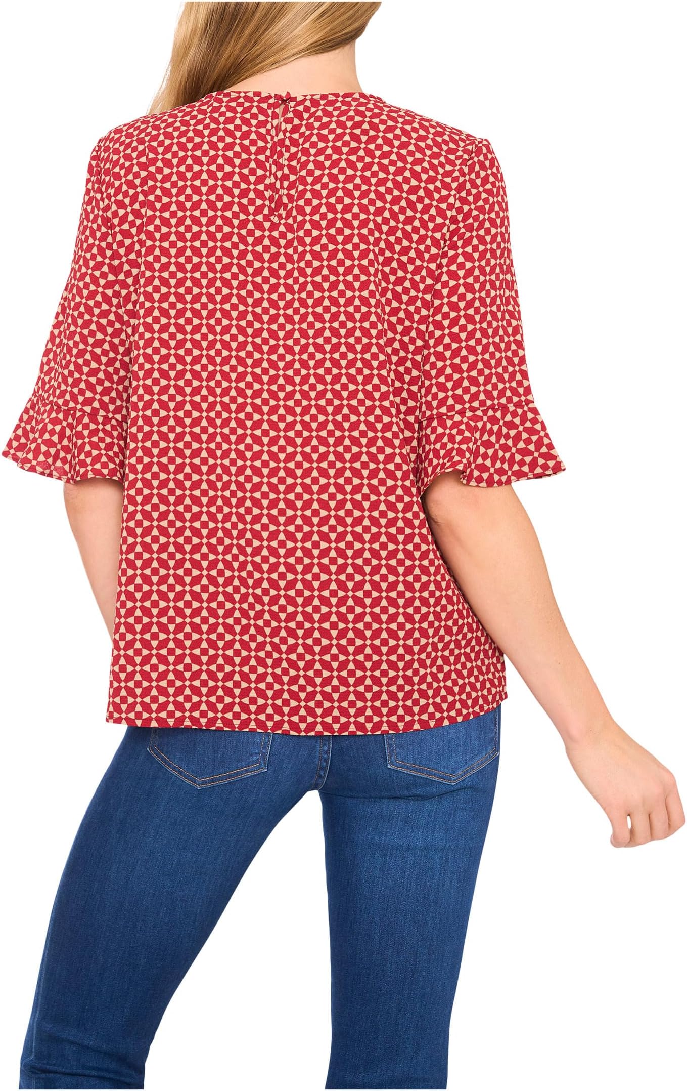Топ CeCe Elbow Sleeve Ruffle Cuff Crew Neck Top, цвет Mulberry Red