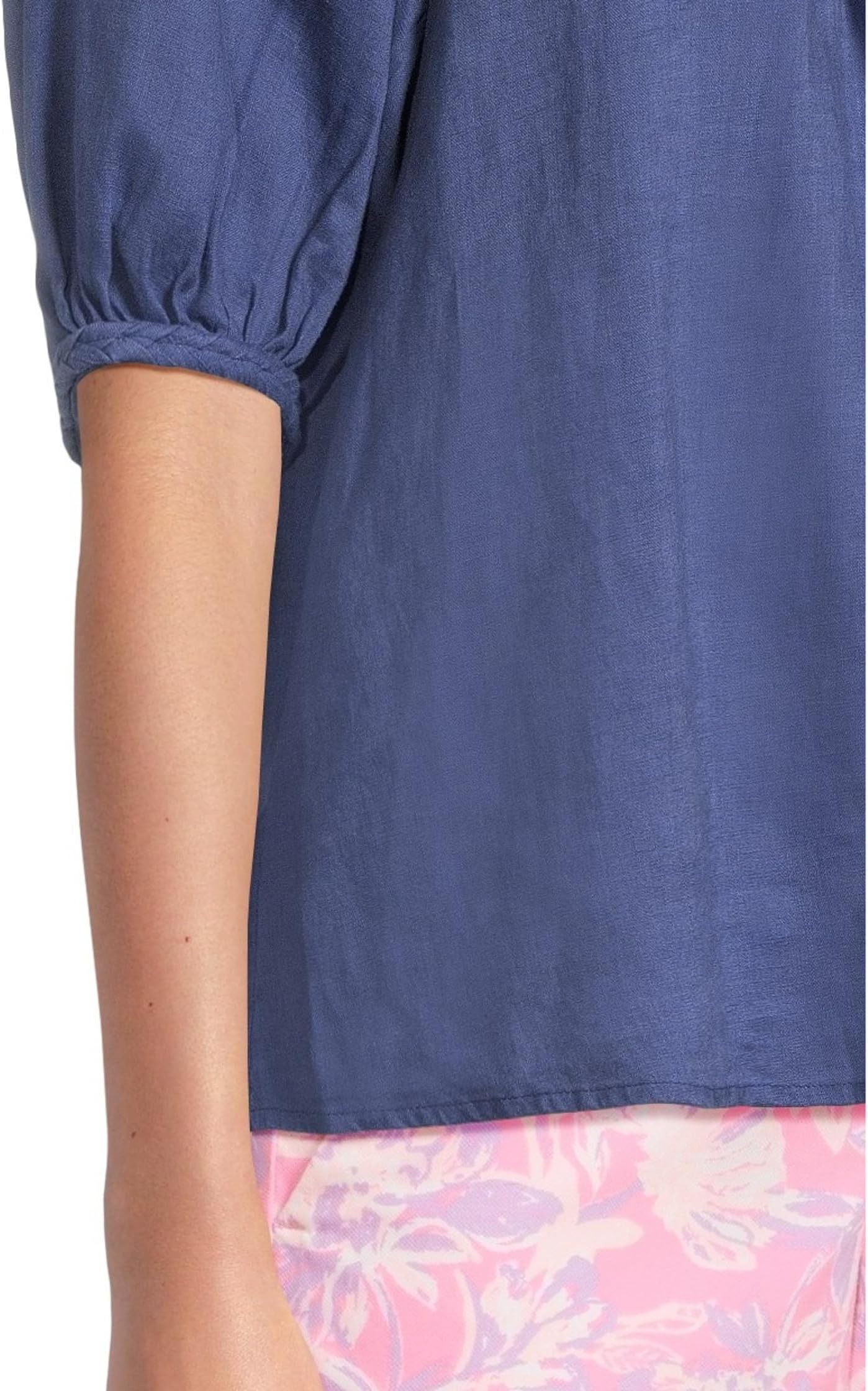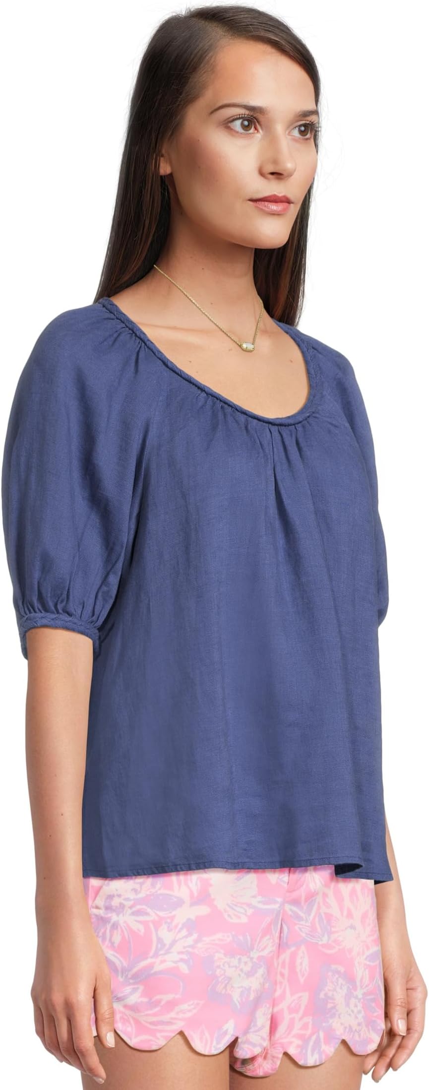 • Топ Lilly Pulitzer Calais с короткими рукавами — это лёгкая, свободная блузка из льна, обеспечивающая лёгкость и комфорт. Круглый вырез горловины с отделкой косой и короткие рукава-буфы создают свободный силуэт, который облегает тело, не облегая его.