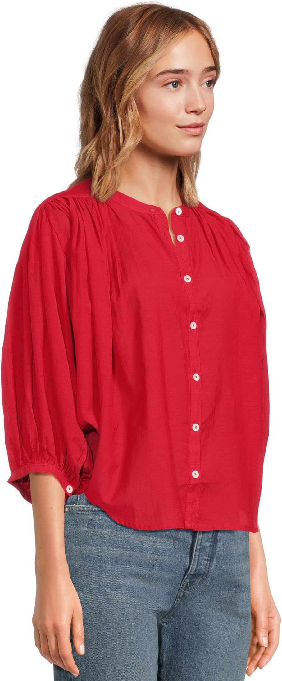 Топ Madewell Shirred Crewneck Button-up Top, цвет Cherry Red
