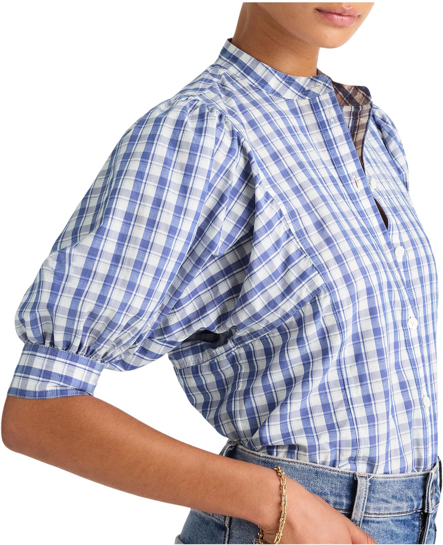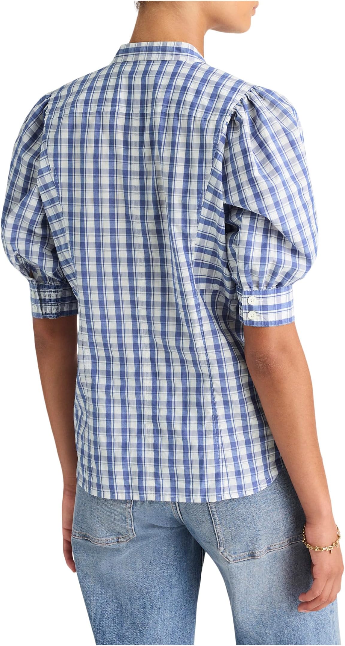 • Топ Madewell Tessa из лёгкого гребенного поплина — дышащая и незаменимая вещь, сочетающая элегантность и повседневную непринуждённость. Он отличается чётким силуэтом с ложным вырезом горловины, короткими рукавами-буфами на манжетах с пуговицами и клетчатым принтом по всей поверхности.