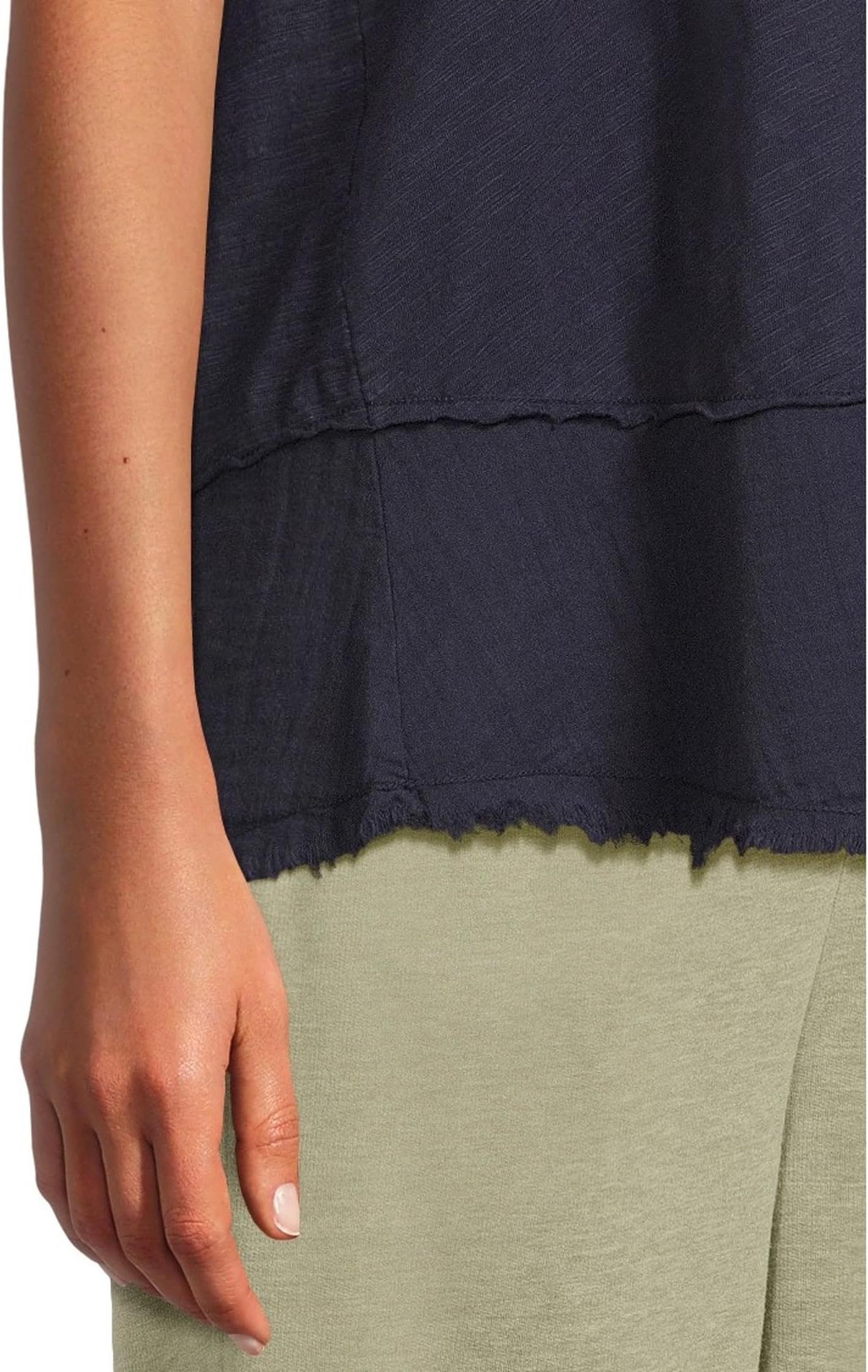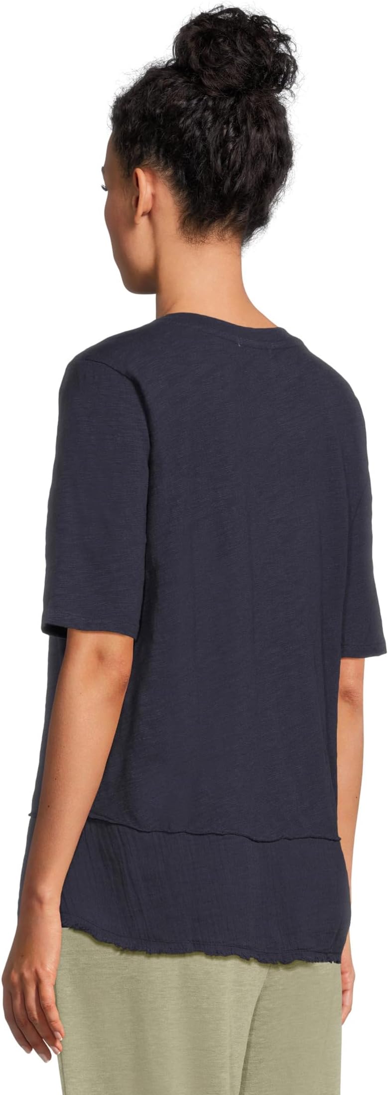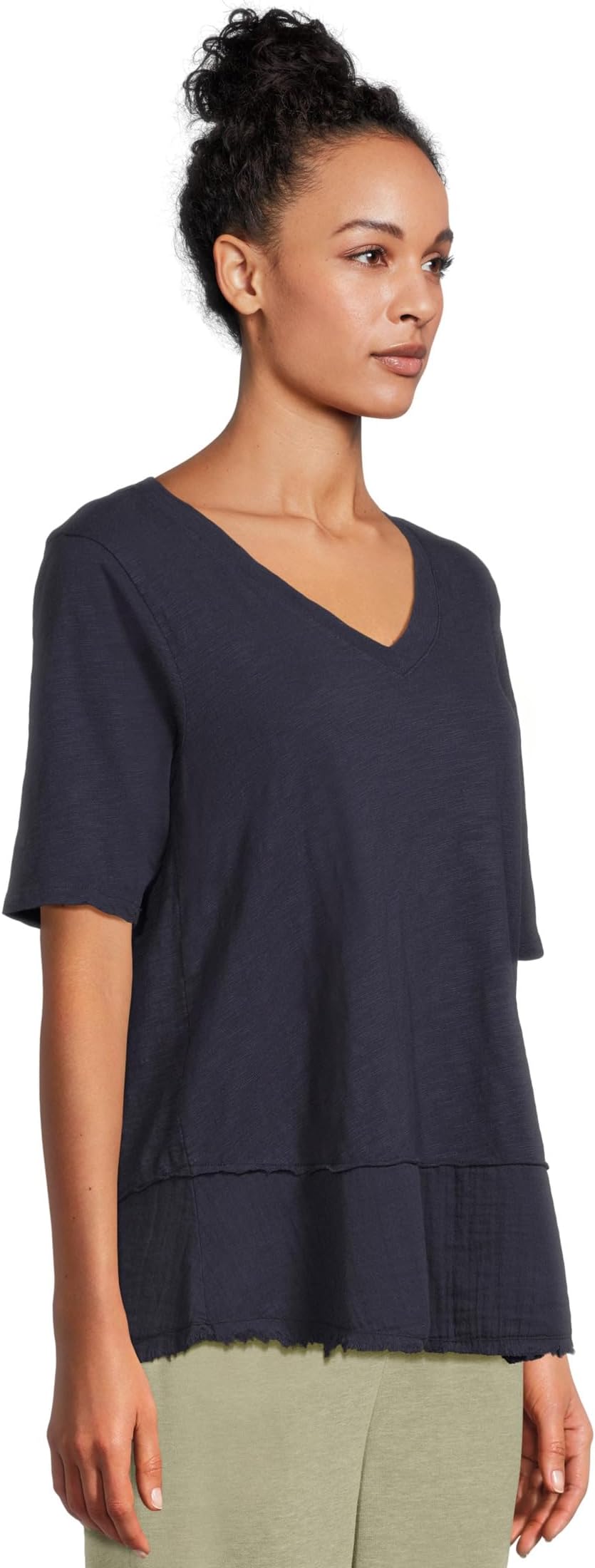 Топ Mod-o-doc Half Sleeve V-neck Mix Media Top, цвет Vibrant Navy