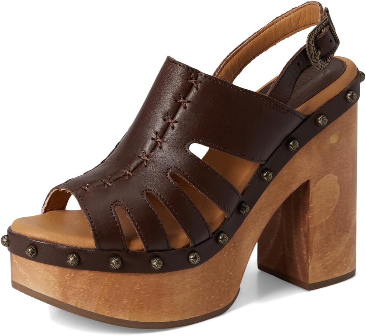 • Туфли Dingo Gema на каблуках выполнены на массивной платформе с текстурой дерева в стиле 70-х, что придаёт им привлекательный вид. Эти босоножки на каблуке изготовлены из мягкой стельки и текстильной подкладки. Кожаный верх украшен заклёпками и уникальной ручной строчкой. Ремешок с ремешком на пятке регулируется застёжкой-пряжкой для идеальной посадки. Создайте свой стильный образ в этих босоножках на платформе.
