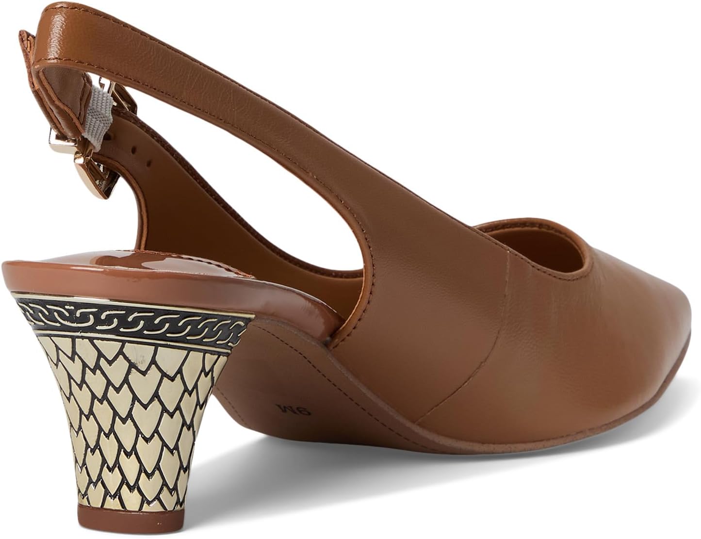 • Скромный, рельефный каблук с чешуйчатым узором.