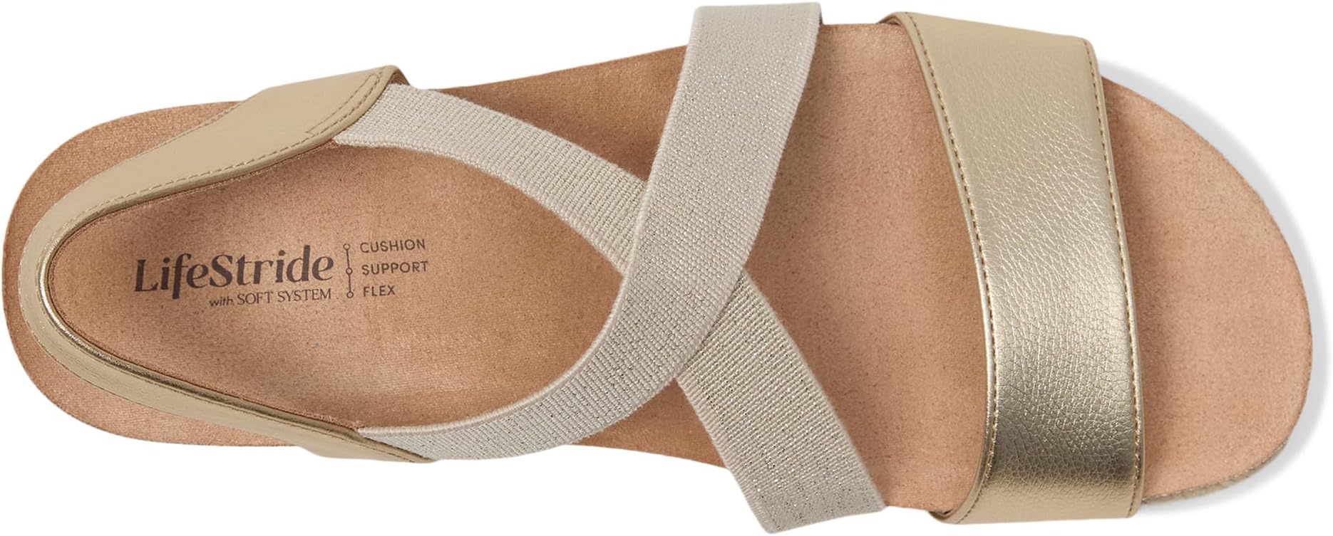 • Одеваться и выглядеть стильно — одно удовольствие в сандалиях LifeStride Breeze с эластичными вставками и деталями в стиле эспадрильи. Верх из искусственной кожи или ткани с эластичными клиновидными ремешками обеспечивает дополнительную гибкость. Подкладка из частично переработанного полиуретана и стелька из пеноматериала с технологией комфорта Trusted Soft System также обеспечивают непревзойденную амортизацию, поддержку и гибкость. Сандалии с открытым круглым носком легко надеваются, а каблук-клинка в стиле эспадрильи обтянут джутом.