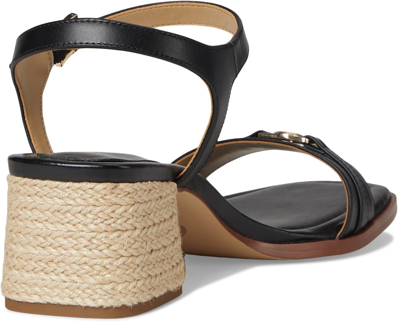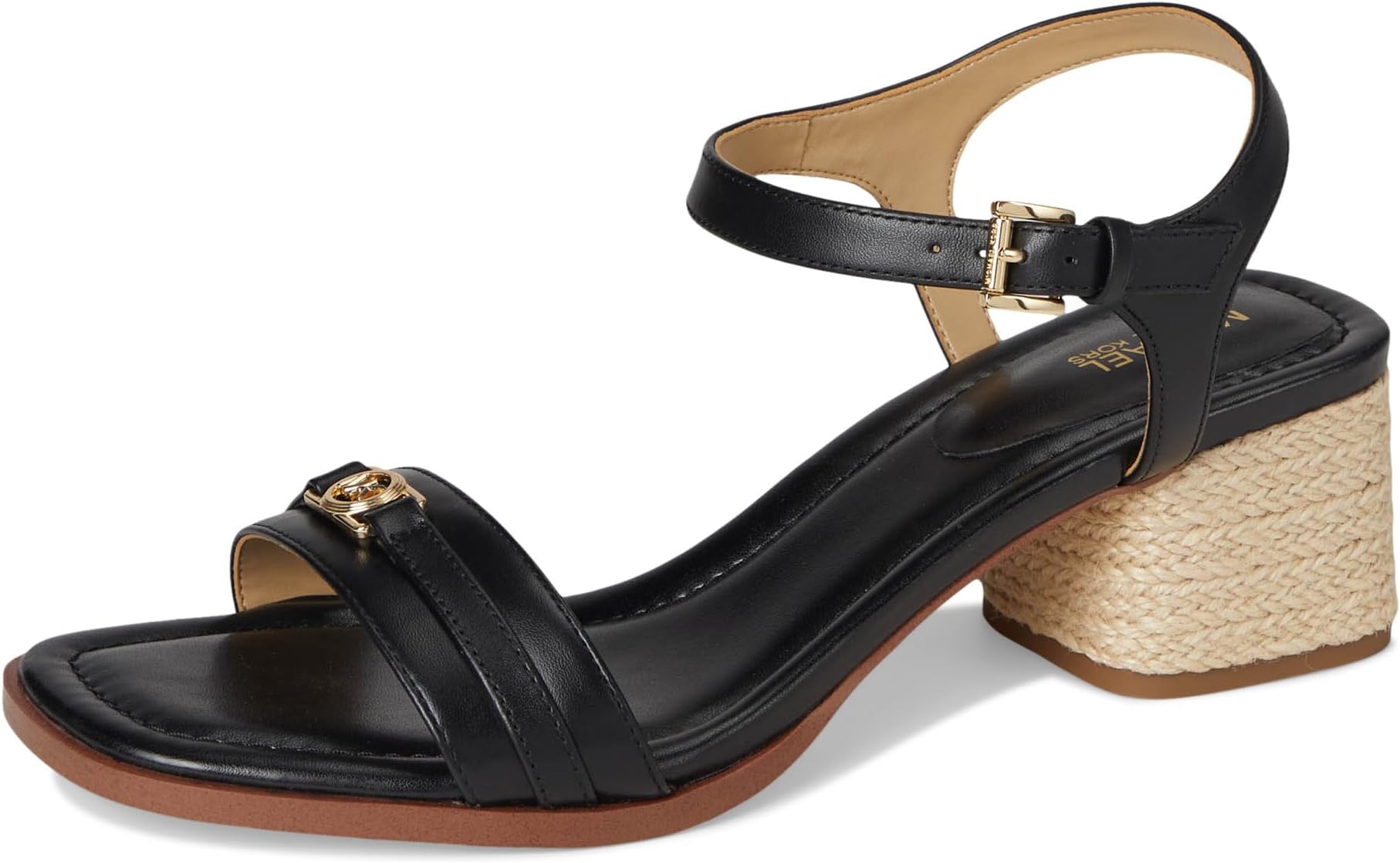• Повседневные, но элегантные босоножки на среднем каблуке с блочным каблуком, ремешком до щиколотки и подвеской MK Facet на верхней части, станут незаменимым предметом повседневной носки. Удобная мягкая стелька.